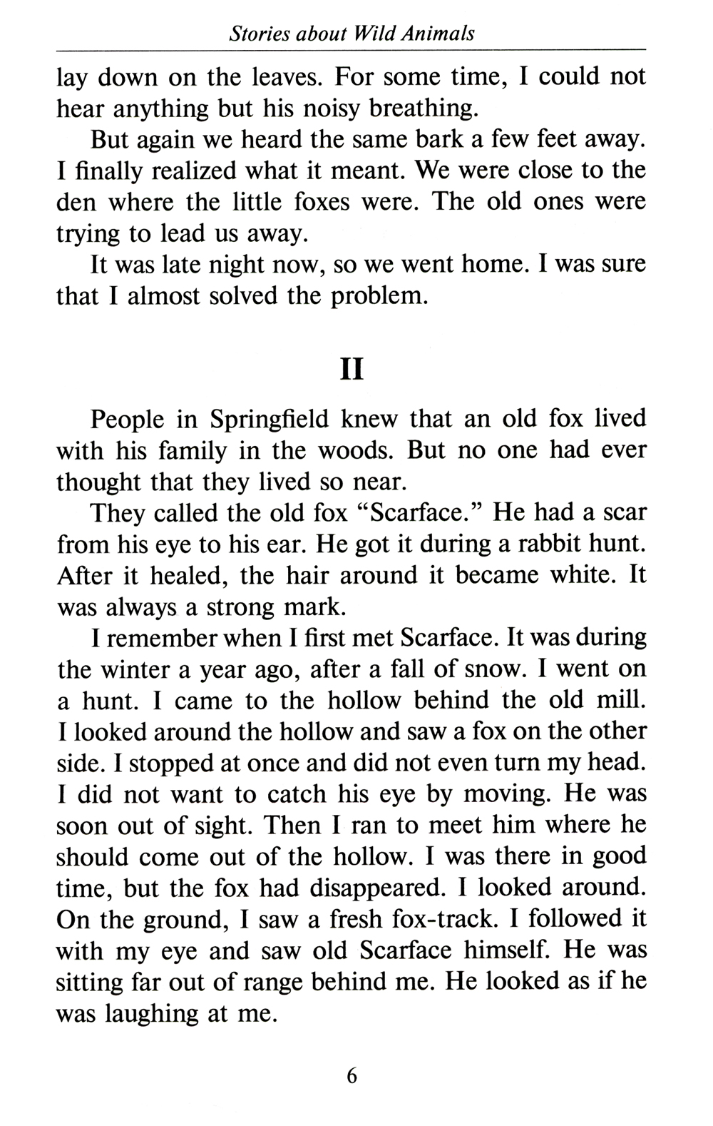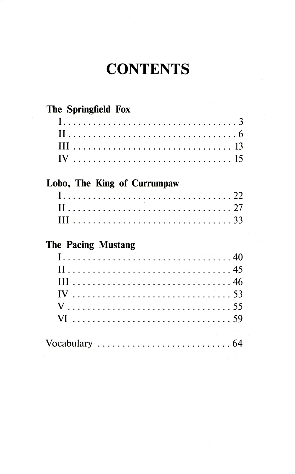 Герои трёх его рассказов: лисье семейство, волчья стая, мустанг - дикие животные, но их жизнь и судьба описаны так, что диким выглядит, скорее, отношение к ним людей. Сами же животные изображены не только с симпатией, но и с истинно человеческой теплотой: они наделены именами, их отношения напоминают семейные, они готовы на самопожертвование - ради друг друга или великой идеи. Лисица до последнего сражается за своего детёныша, рискуя собственной жизнью. Глава волчьей стаи не может забыть и бросить убитую охотниками подругу. Дикий мустанг не представляет жизни в неволе и выбирает последний прыжок с крутого утёса.