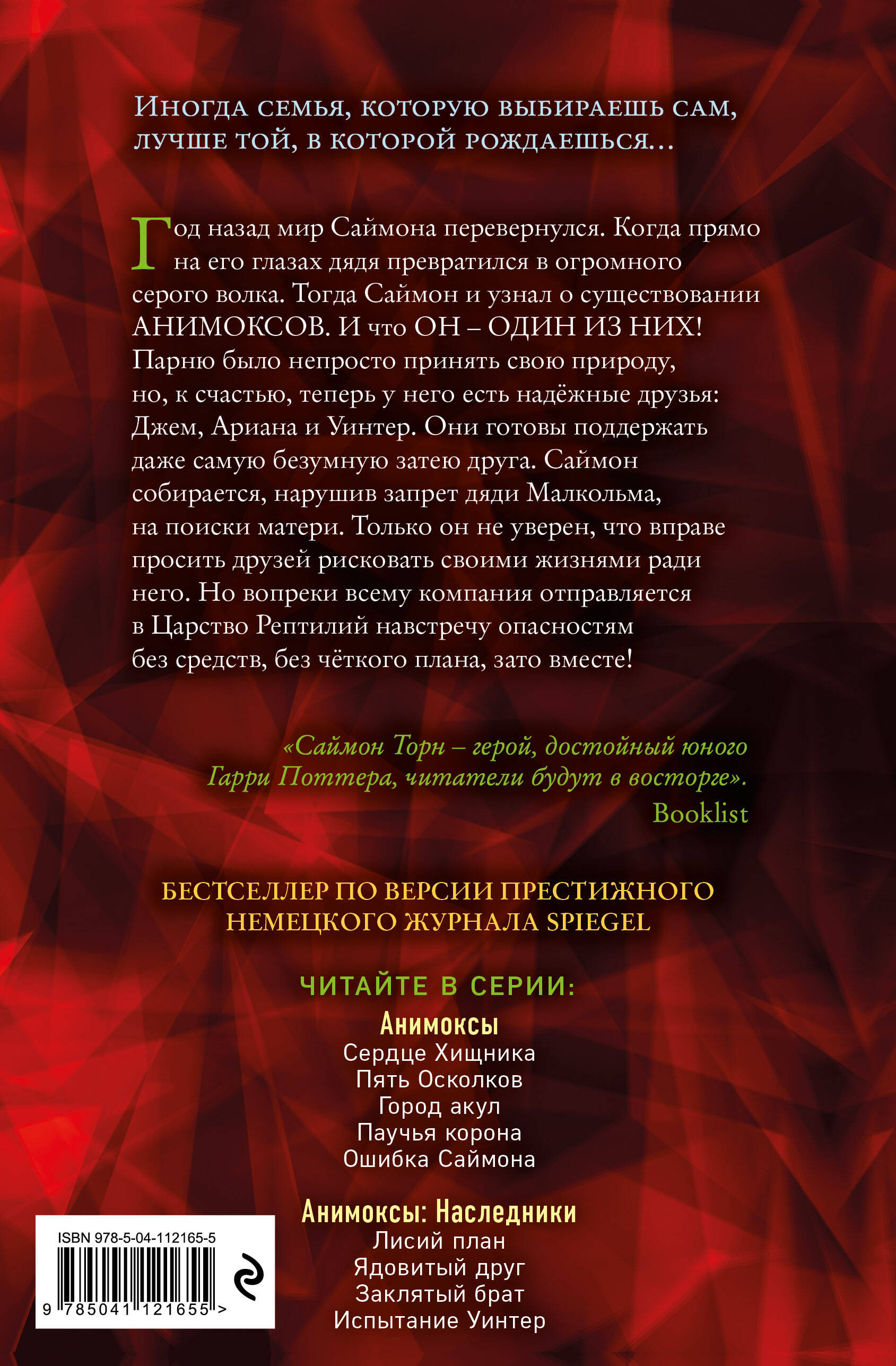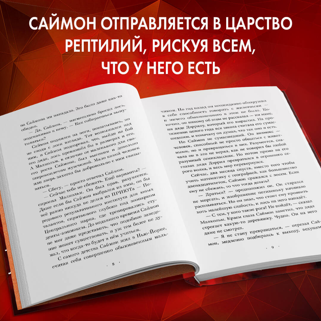 Вторая часть в популярной серии «Анимоксы» от Эйми Картер. Саймон с друзьями отправляется отправляется в Царство Рептилий, чтобы добыть очередной Осколок Хищника. Однажды мир Саймона Торна перевернулся. Оказывается, он и вся его семья - анимоксы! Люди, которые умеют превращаться в животных. Мальчику поначалу было непросто принять всё это, но как только у него появились друзья, которые его понимают и поддерживают, Саймон стал постепенно привыкать к своей природе. Пока он учился управляться со своим новым орлиным телом, его дед Орион замыслил собрать Осколки Хищника - самого могущественного оружия в мире. Он хочет захватить мир анимоксов и стать полноправным правителем всех Пяти Царств. Саймон во что бы то ни стало должен помешать ему собрать Осколки! Невероятные приключения, история о необычной школе, о дружбе, поиске себя и своей индивидуальности. В мире анимоксов хочется жить, героям хочется подражать. Понравится поклонникам «Детей леса» и «Детей моря»!| Издательство | ООО "Издательство "Эксмо" |