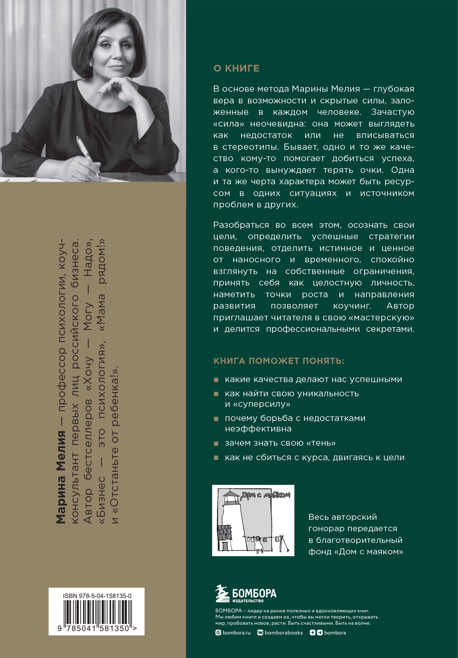Марина Мелия, профессор психологии и коуч-консультант первых лиц российского бизнеса, известна своим уникальным подходом к работе с человеком. Суть его - в глубокой вере в возможности и скрытые силы, которыми обладает абсолютно каждый. Но найти эту силу не всегда просто. Это и есть основная задача коучинга. Автор впервые приглашает читателя в свою профессиональную «мастерскую» и делится секретами своей методики, сложившейся за более чем 50 лет практического консультативного опыта. «За долгие годы практики я перепробовала множество инструментов, отобрала и отшлифовала лучшие, - пишет Марина Мелия. - Сформировались принципы, которыми я руководствуюсь, пришло понимание, какие качества нужно развивать в себе, если стремишься к вершинам мастерства. Все это сложилось в единый авторский метод, секретами которого я и хочу поделиться». Книга будет полезна книга: ● Во-первых, всем, чья деятельность относится к коммуникативным или «помогающим» профессиям, и прежде всего моим коллегам - профессионалам в области executive-коучинга. ● Во-вторых, тем, кто собирается обратиться к коуч-консультанту. ● И, наконец, эта книга для вдумчивого читателя, который не готов останавливаться на достигнутом, думает о своем развитии или просто хочет узнать больше о себе и о других.| Издательство | ООО "Издательство "Эксмо" |