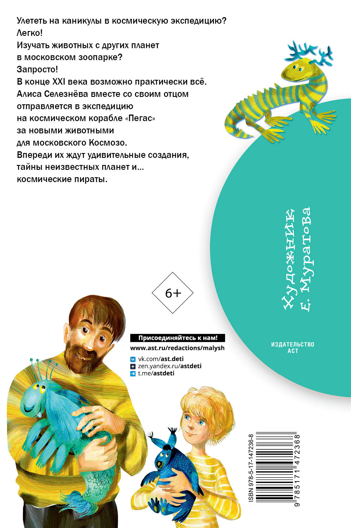 Знаменитая Алиса Селезнёва. Книга написана Киром Булычёвым специально для младших школьников. Входит в школьную программу. Улететь на каникулы в космическую экспедицию? Легко! Изучать животных с других планет в московском зоопарке? Запросто! В конце XXI века возможно практически всё. Алиса Селезнёва вместе со своим отцом отправляется в экспедицию на космическом корабле «Пегас» за новыми животными для московского Космозо. Впереди их ждут удивительные создания, тайны неизвестных планет и… космические пираты.| Издательство | ИЗДАТЕЛЬСТВО "АСТ" |