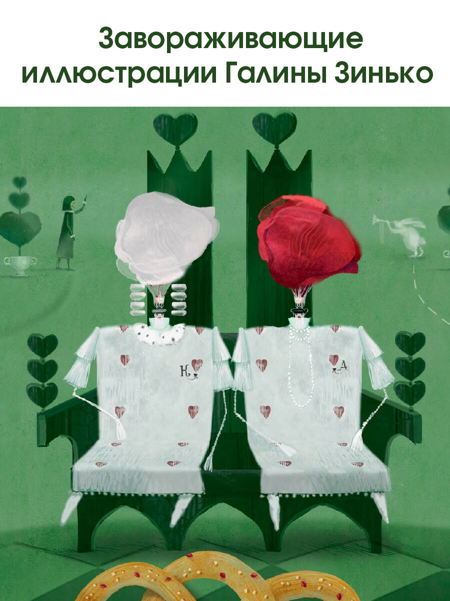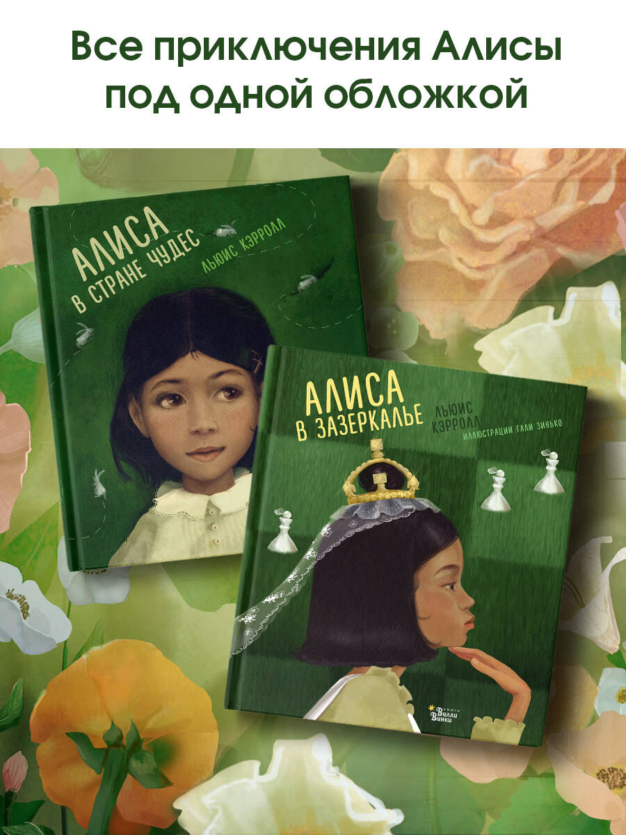 Невероятные и захватывающие приключения девочки Алисы в Стране чудес и Зазеркалье в одной книге. Волшебный мир, куда можно попасть, отправившись следом за Белым кроликом или пройдя через стекло зеркала над каминной полкой. Классическая сказка Льюиса Кэрролла никогда ещё не выглядела так современно и необычно благодаря талантливой художнице Гале Зинько, лауреату всероссийского конкурса книжной иллюстрации "Образ книги". Стиль рисования Гали Зинько узнаваем и любим как в России, так и в Европе.