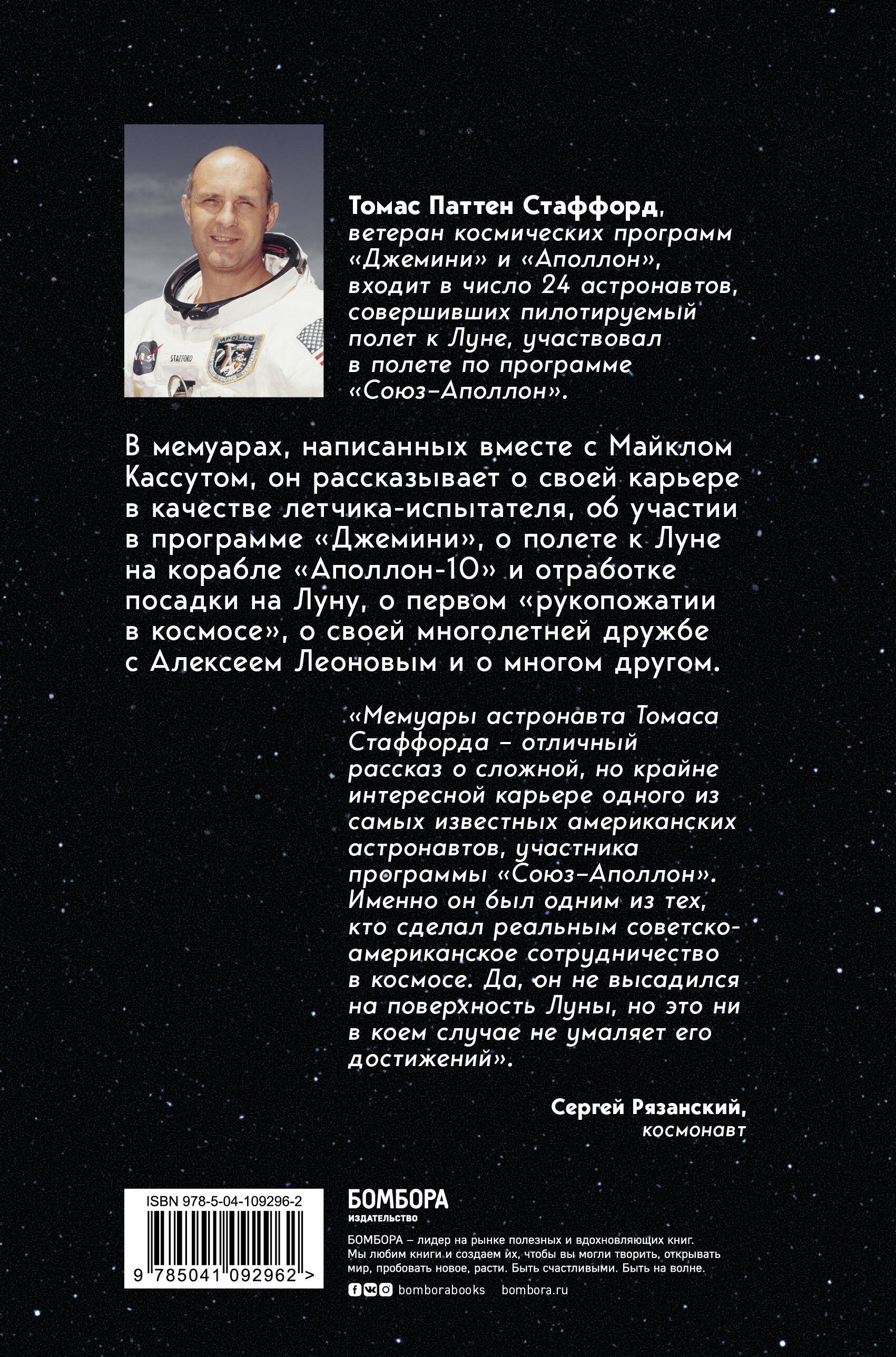 В этих мемуарах, написанных совместно с Майклом Кассуттом, Томас Стаффорд рассказывает о своих ранних успехах в качестве летчика - испытателя. О своем «рукопожатии в космосе», которое доказало всему миру, что две противоборствующие страны могут успешно работать вместе. Команда Стаффорда "Аполлон - Союз" была первой группой американцев, работавших в центре подготовки космонавтов, а также первой, посетившей Байконур.В настоящее время Стаффорд продолжает выполнять руководящую роль, участвуя в проектировании и оценке космического корабля.| Издательство | Эксмо |