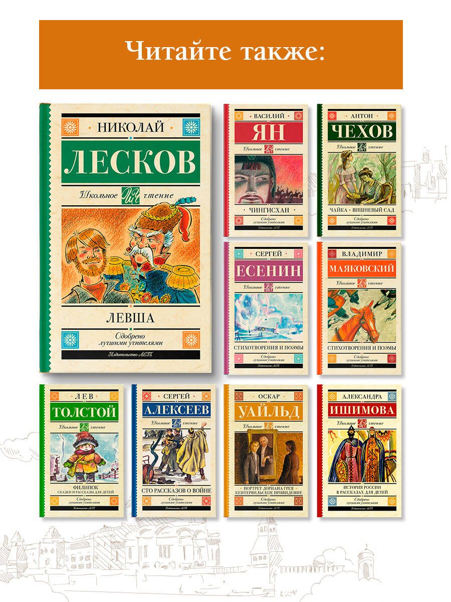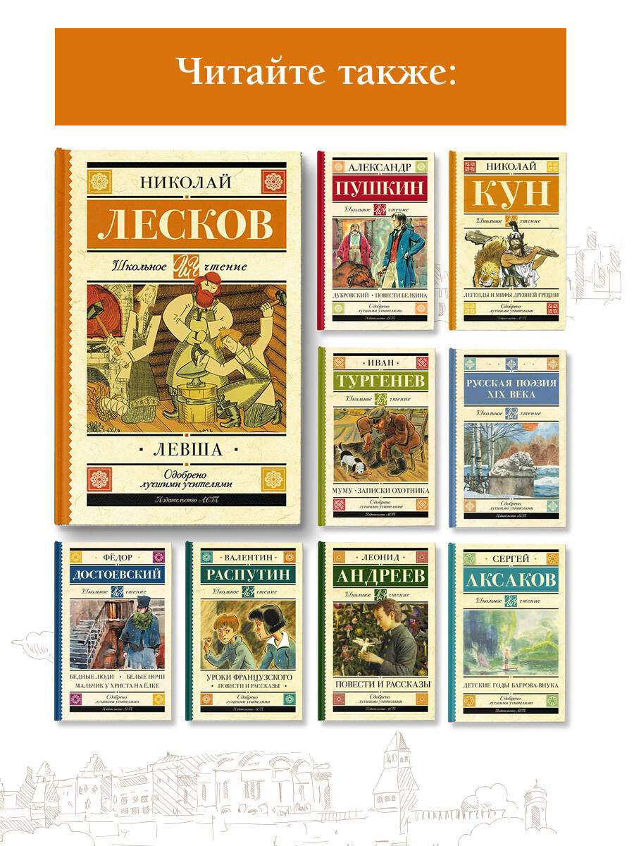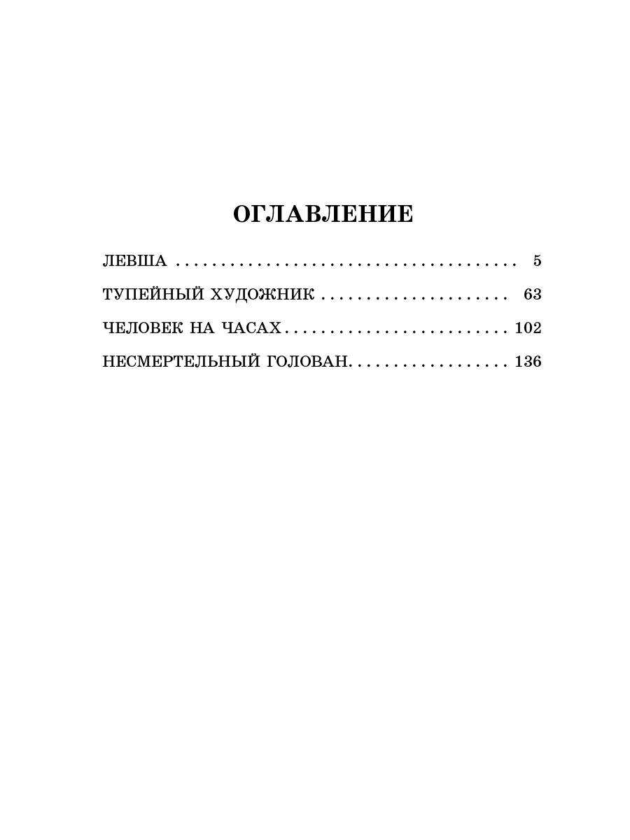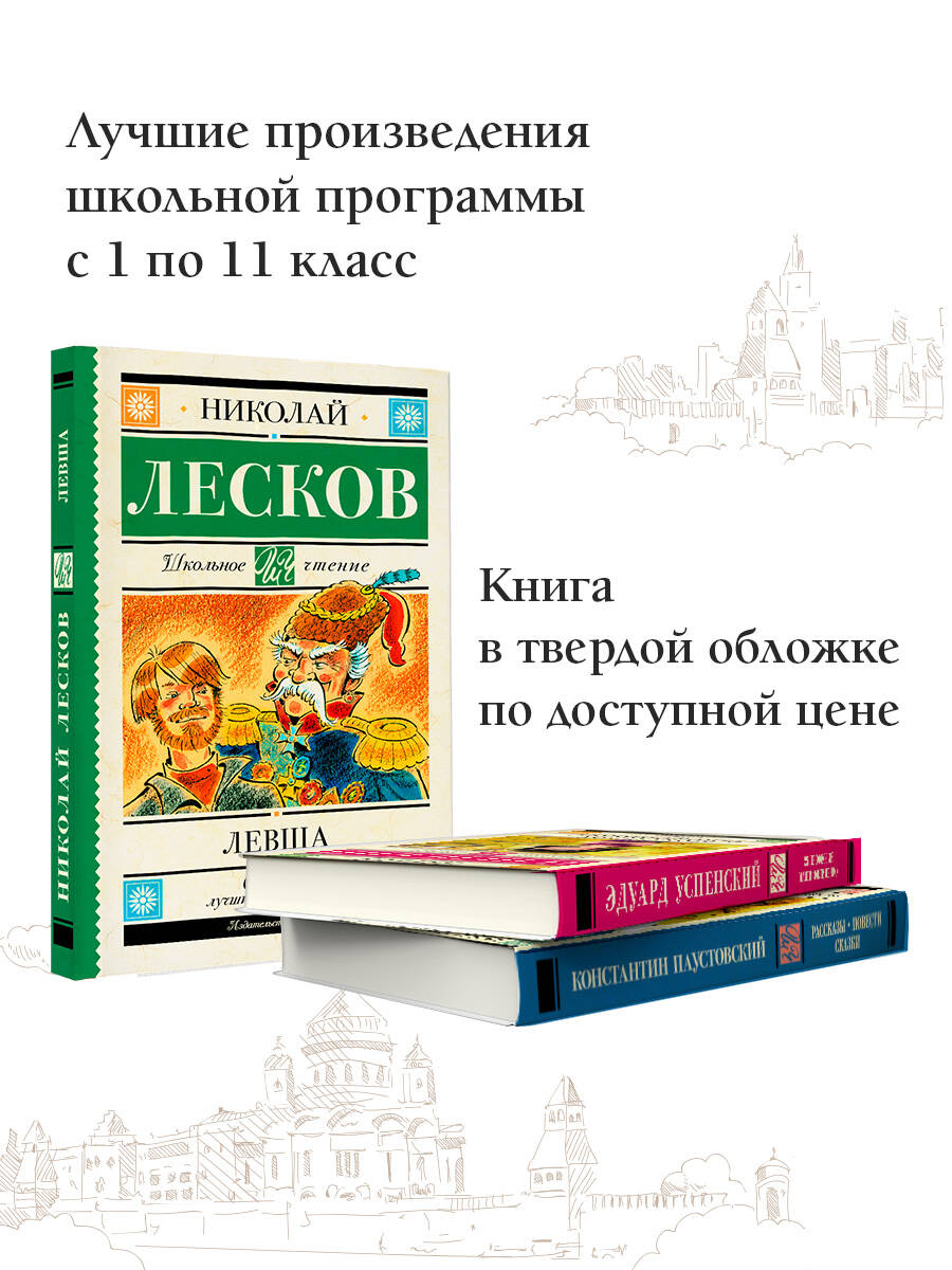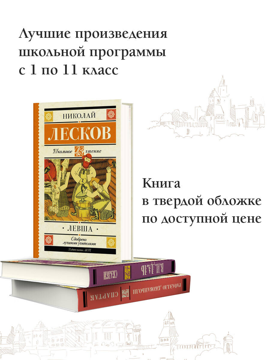 Необходимый минимум произведений Н. Лескова - для каждого школьника! В этот сборник вошло несколько известнейших произведений Николая Семеновича Лескова. Их изучают как в школе, так и на индивидуальных занятиях литературой. В своих историях он описывал обыкновенных людей, волею случая проявляющих выдающиеся способности или душевные качества, которых никто не ждал. Они помогут читателю раскрыть в себе способность к сопереживанию, искреннюю теплоту и смелость принимать сильные решения. В книгу вошла повесть «Левша» об умельце, который смог подковать блоху, а также рассказы «Тупейный художник», «Человек на часах» и «Несмертельный Голован». Все эти произведения входят в список рекомендованной школьникам литературы. В серию «Классика для школьников» включены лучшие произведения отечественной и зарубежной литературы, входящие в школьную программу с 1 по 11 класс и в списки дошкольного чтения. Книги в твердом переплете сделают знакомство с литературой легким и увлекательным. Серия, которая не ударит по семейному бюджету и поможет юному читателю расти нравственно и интеллектуально!