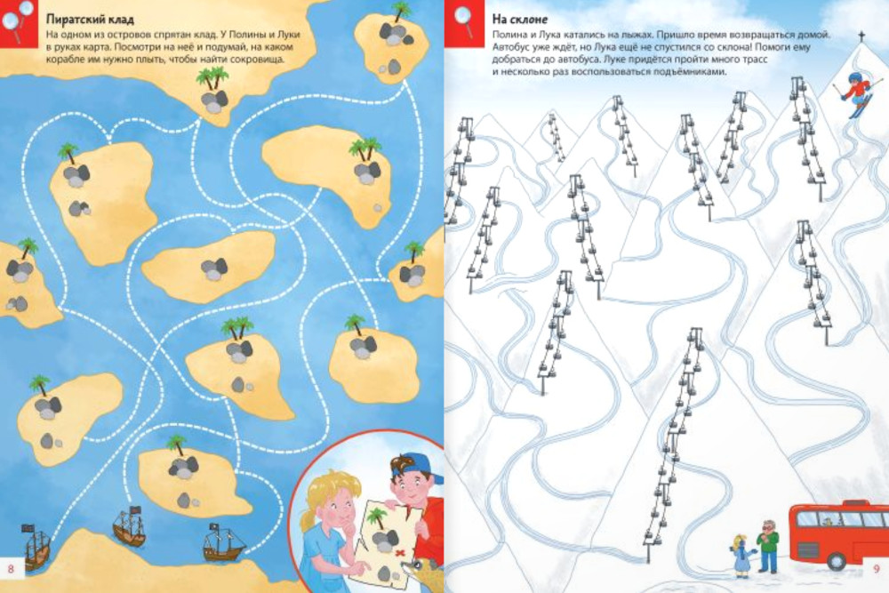 Полина и её брат Лука - отважные путешественники. Они не боятся самых сложных дорог! Им предстоит пройти по разнообразным лабиринтам - высоко в горах, в море, в жаркой пустыне и даже на небе. Присоединяйся к ним! Помоги друзьям не заблудиться в заколдованном лесу, найти маму потерявшегося динозаврика, починить сложный механизм и преодолеть множество опасных препятствий.