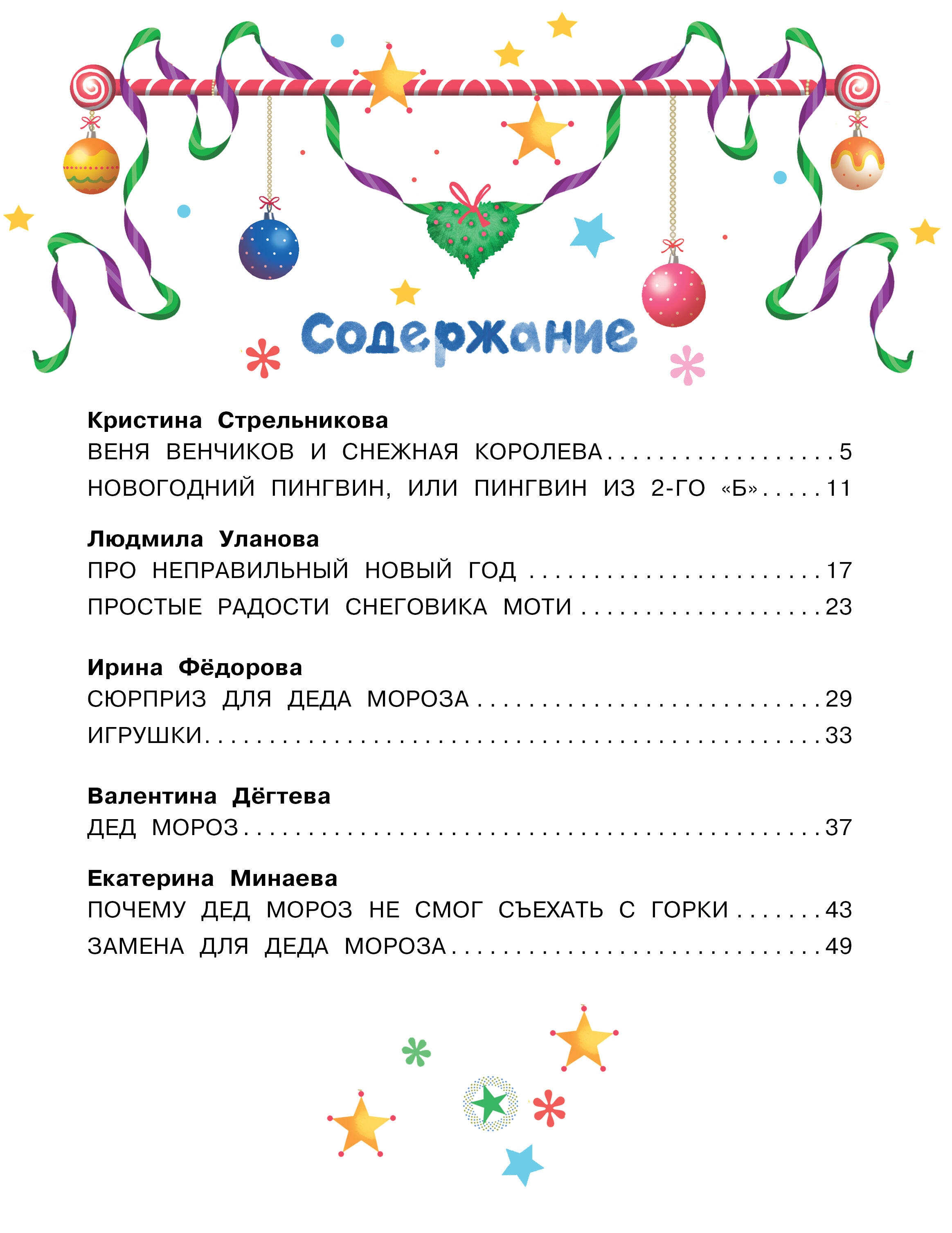 Cамый весёлый, добрый и волшебный праздник - Новый год! Его с нетерпением ждут и взрослые, и дети. Ведь Новый год - это и ёлочка-красавица, и Дед Мороз со Снегурочкой, и яркие огоньки гирлянд и, конечно, подарки! А что, если Новый год не такой? Что, если он… неправильный? На письма вместо Деда Мороза отвечает второклассник Иван Ромашков. Новогодние желания исполняет снеговик. Ёлочные украшения безобразничают и ругаются. Ёлка оказывается вовсе не ёлкой. А сам Дед Мороз настолько устал за последнюю сотню лет, что перепутал все подарки. Чем закончится этот неправильный Новый год, вы узнаете из нашей книги. Весёлые сказочные истории для неё написали современные детские писатели - Кристина Стрельникова, Людмила Уланова, Ирина Фёдорова, Валентина Дёгтева и Екатерина Минаева. А рисунки к ним нарисовала талантливая художница Юлия Куршева.| Издательство | ИЗДАТЕЛЬСТВО "АСТ" |