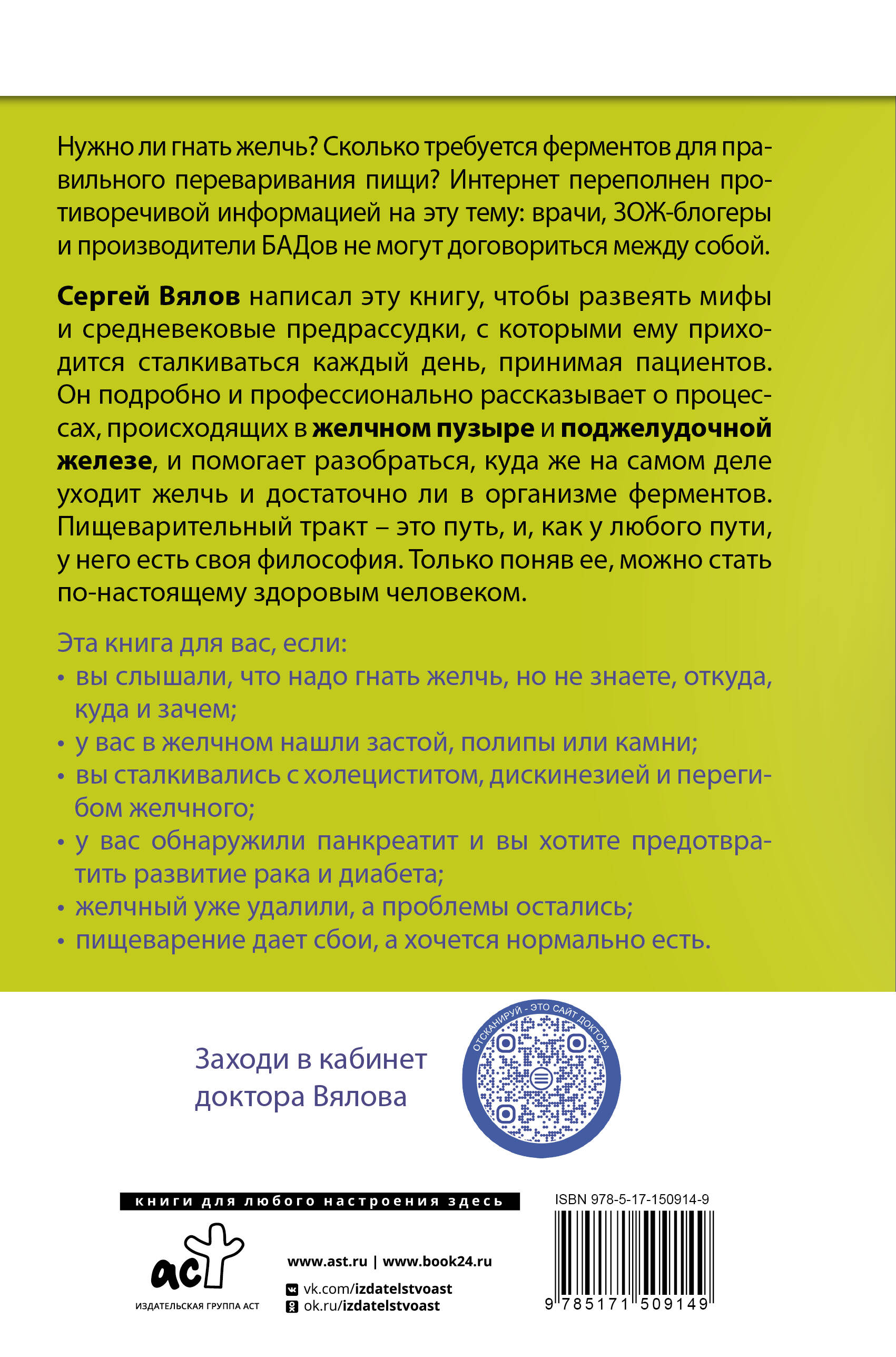 «Желчь и ферменты» - книга, из которой вы узнаете: - про питание для желчного и поджелудочной - что такое желчь, откуда и куда она уходит; - как устроен желчный проток; - откуда берутся ферменты; - как предотвратить желчные проблемы и избавиться от имеющихся - что делать, чтобы восстановить выделение желчи - как прийти к вечной ремиссии панкреатита| Издательство | ИЗДАТЕЛЬСТВО "АСТ" |