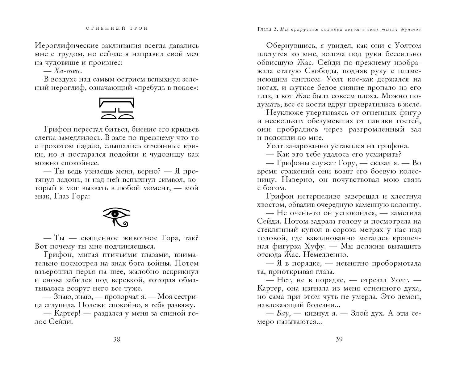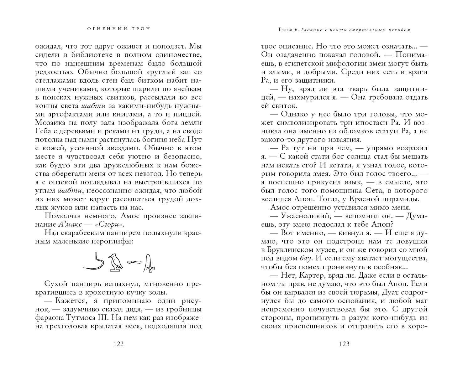 Как бы вы поступили, если бы выбирали между спасением мира и празднованием собственного дня рождения? Или спасением мира и жизнью любимой девушки? Картер и Сейди Кейн не уверены, что у них есть ответы на эти вопросы. Не уверены, что смогут поступить правильно, - но они попытаются изо всех сил. Ведь брат и сестра Кейны не просто подростки, они наследники египетских фараонов и могущественные маги. А значит, именно им предстоит отправиться в опасное и фантастическое путешествие в Дуат, иной мир, чтобы отыскать там солнечного бога Ра. И попытаться объединить богов и магов перед битвой с Апопом - древним змеем, воплощающим силы хаоса… Выстоит наш мир или будет уничтожен, зависит от них. На этот раз мастер подросткового фэнтези Рик Риордан, автор бестселлера о приключениях Перси Джексона, обратился к мифологии Древнего Египта. Перед вами вторая книга новой серии.| Издательство | ООО "Издательство "Эксмо" |