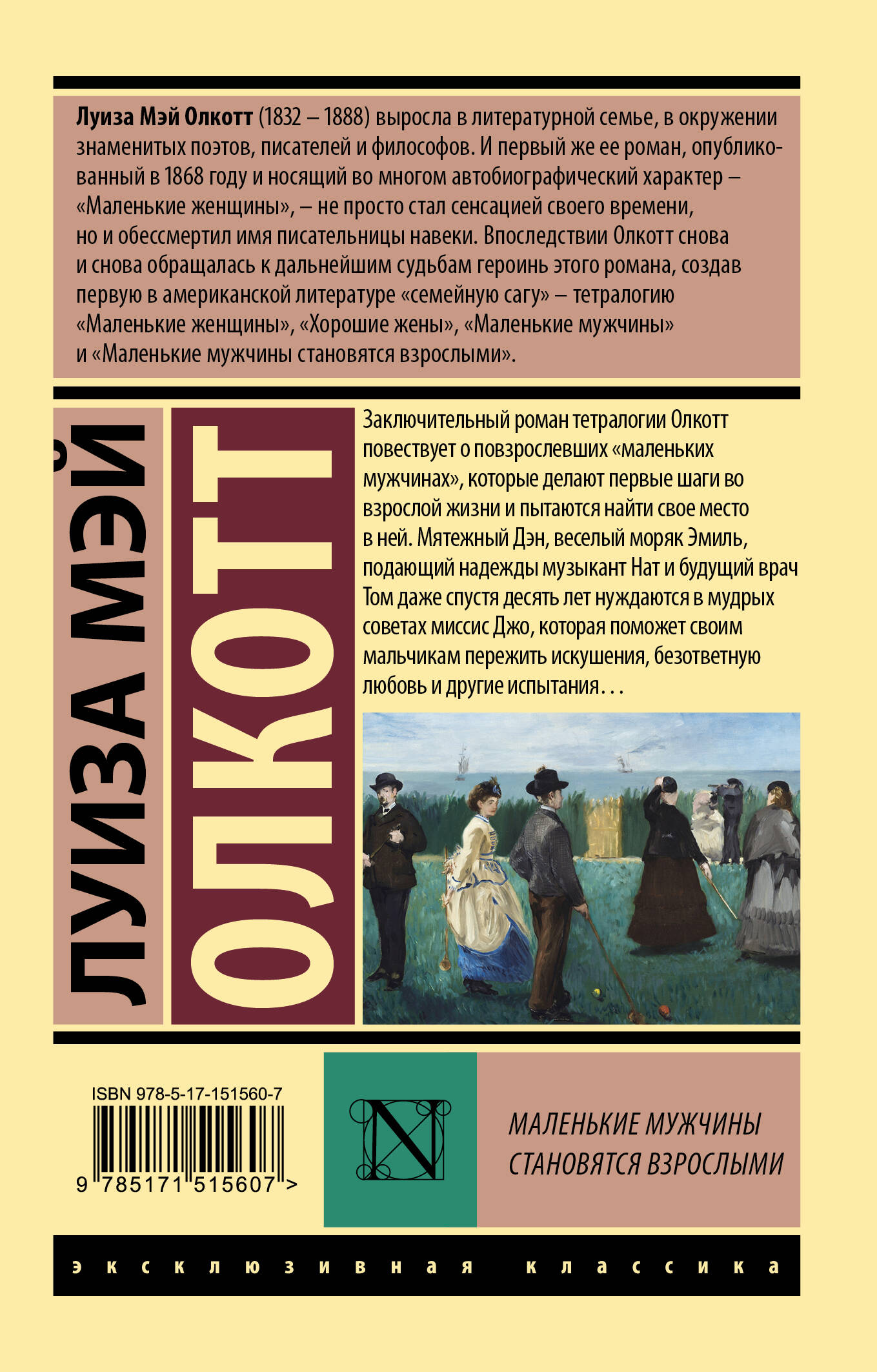 Заключительный роман тетралогии Олкотт повествует о повзрослевших "маленьких мужчинах", которые делают первые шаги во взрослой жизни и пытаются найти свое место в ней. Мятежный Дэн, веселый моряк Эмиль, подающий надежды музыкант Нат и будущий врач Том даже спустя десять лет нуждаются в мудрых советах миссис Джо, которая поможет пережить своим мальчикам искушения, безответную любовь и другие испытания…