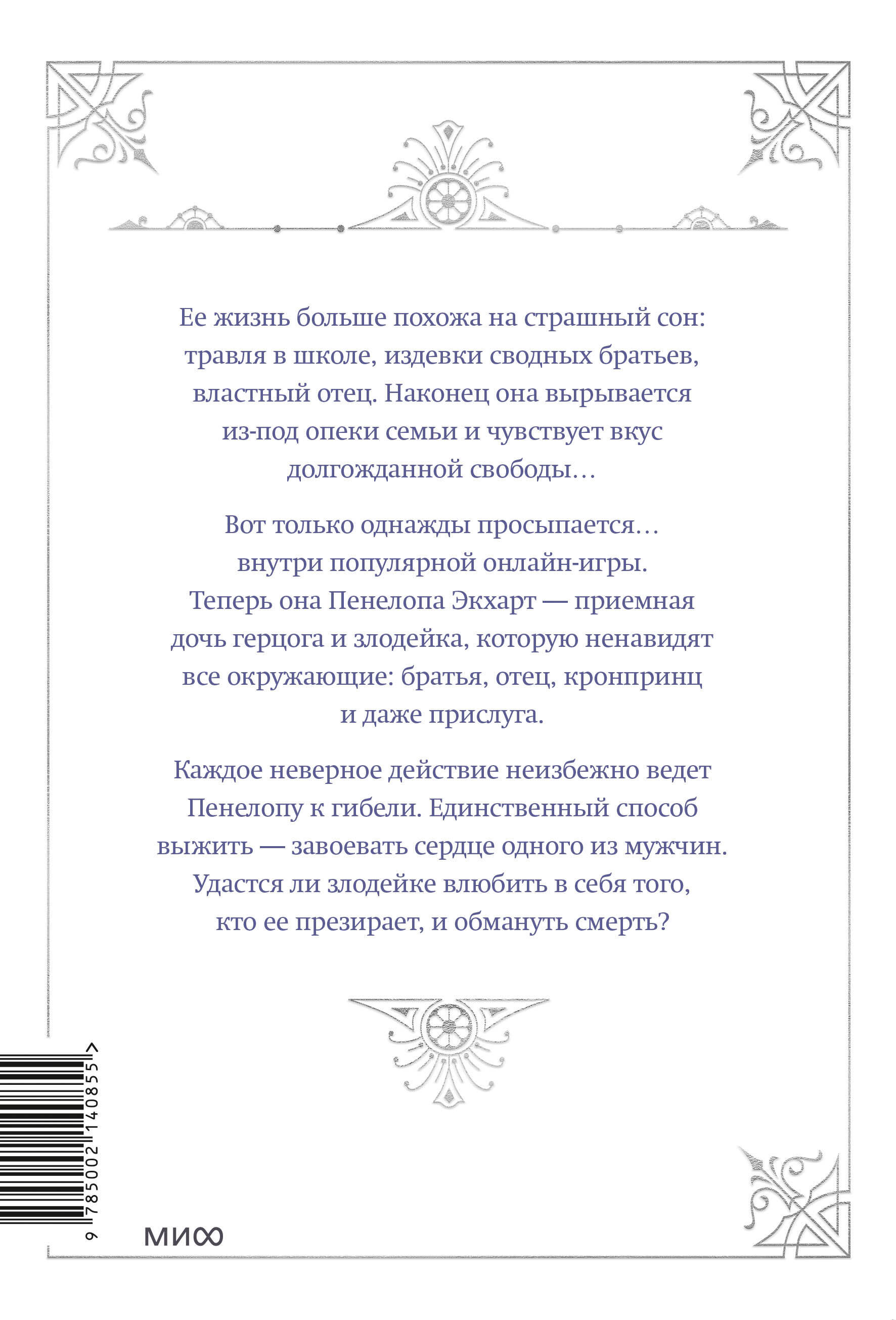 Это история девушки, которая становится сильной в невероятных обстоятельствах. Она живет обычной жизнью, сталкивается с проблемами, которые знакомы каждому: непонимание со стороны родителей, любовные переживания, одиночество. Пока однажды не просыпается Пенелопой Экхарт, главной злодейкой в популярной онлайн-игре - сильной, дерзкой и принципиальной. Все вокруг ее ненавидят, считают ничтожеством и желают смерти. Каждое неверное слово или поступок девушки - риск. Чтобы выжить, ей нужно завоевать симпатию одного из мужских персонажей. Однако это совсем не просто, ведь все они настроены против Пенелопы. Удастся ли ей обмануть саму смерть?| Издательство | МАНН, ИВАНОВ И ФЕРБЕР ООО |
