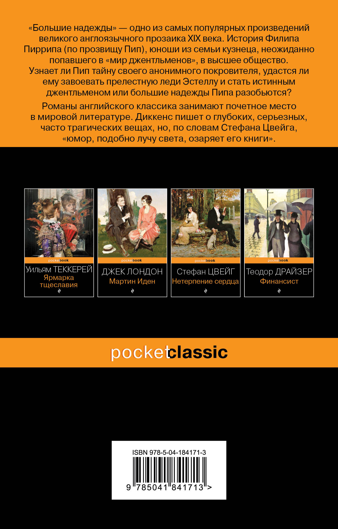 «Большие надежды» - одно из самых популярных произведений великого англоязычного прозаика XIX века. История Филипа Пиррипа (по прозвищу Пип), юноши из семьи кузнеца, неожиданно попавшего в «мир джентльменов», в высшее общество. Узнает ли Пип тайну своего анонимного покровителя, удастся ли ему завоевать прелестную леди Эстеллу и стать истинным джентльменом или большие надежды Пипа трагически разобьются? Романы английского классика занимают почетное место в мировой литературе - они переведены на многие языки, постоянно переиздаются и экранизируются. Диккенс пишет о глубоких, серьезных, часто трагических вещах, но, по словам Стефана Цвейга, «юмор, подобно лучу света, озаряет его книги». В конце марта 2023 г. состоялась премьера сериала по роману.| Издательство | ООО "Издательство "Эксмо" |
