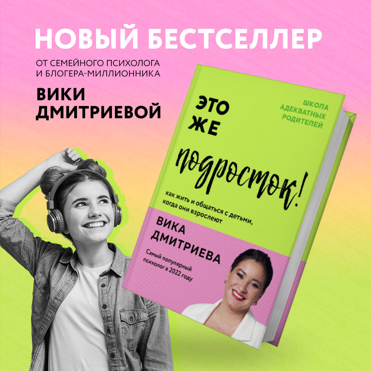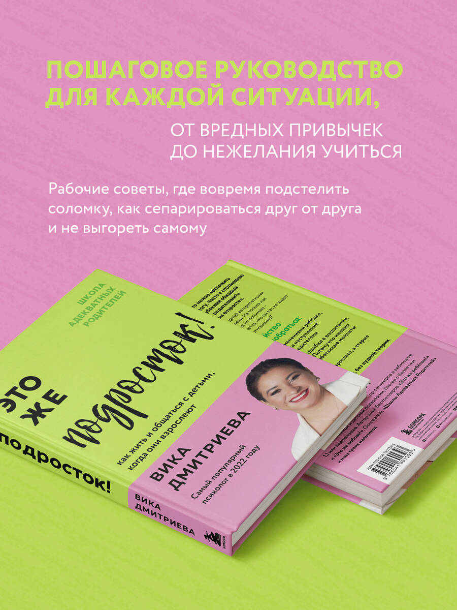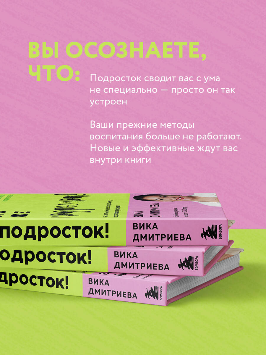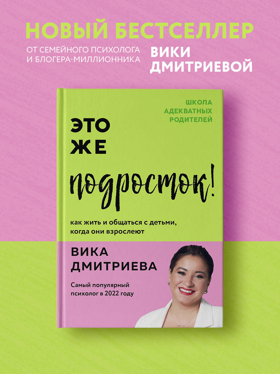 Долгожданная новинка Вики Дмитриевой! ВИКА ДМИТРИЕВА - семейный психолог, телеведущая, автор семинаров и вебинаров по темам семейной и детской психологии, блогер с более чем 1,1 млн подписчиков. Автор книг-бестселлеров: «Это же ребенок!» и «Это же любовь!», которые вышли тиражом более 230 000 экземпляров. Основатель «Школы Адекватных Родителей» и мама троих мальчиков. Что ждет родителей подростка? Можно ли как-то подготовиться к тому, что ваш милый и послушный малыш превратился в недовольное нечто, которое бунтует и закрывается от вас? Подростки раздражают родителей, родители бесят подростков. Вместе с раздражением растет и родительский страх: а вдруг не сдаст экзамены, закурит, убежит из дома! Ну почему с подростками так сложно? Вика Дмитриева уверена, что проблема переходного возраста кроется не только в ребенке. Зачастую родители не готовы принять произошедшие с ребенком перемены, изменить свой стиль общения и подход к воспитанию. Из этой книги вы узнаете: - кто такие подростки и что у них в голове; - с помощью каких вопросов и алгоритмов можно решить любую проблему; - как сохранить доверительные отношения и грамотно разрешать конфликты; - что делать в ситуациях, когда подросток показывает «трудное поведение»; - почему не стоит бояться цветных волос, социальных сетей и «плохого» вкуса в музыке.| Издательство | ООО "Издательство "Эксмо" |