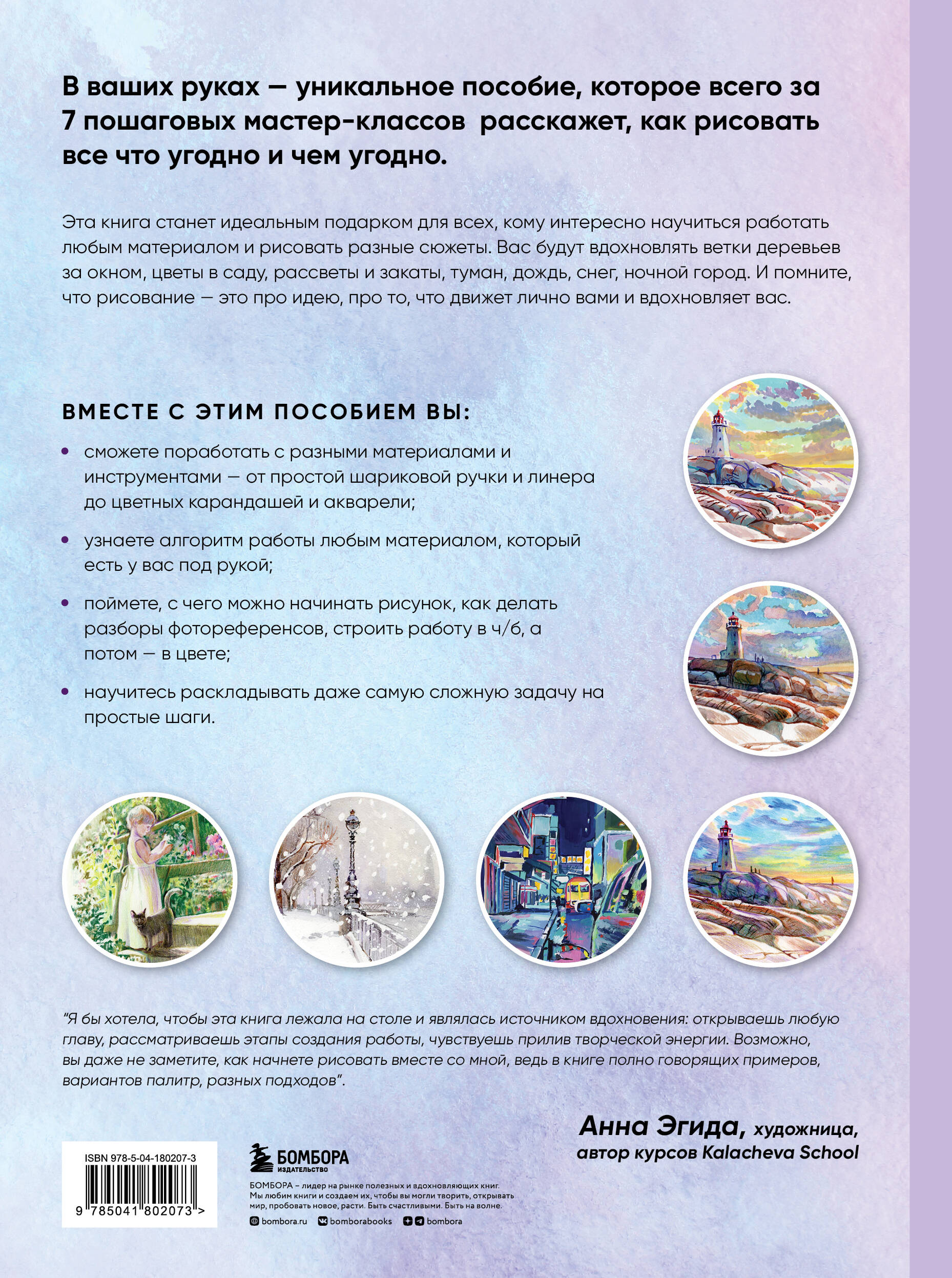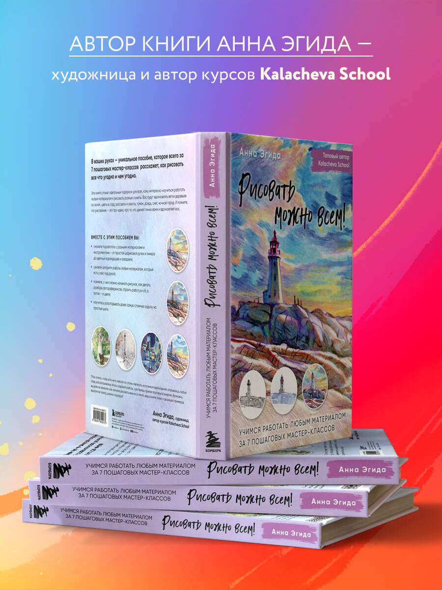 «Рисовать можно всем!» - новая книга от художницы, преподавательницы и автора курсов Kalacheva School Анны Эгиды. В ней она расскажет, как просто освоить алгоритм работы любым материалом, чтобы каждый смог рисовать то, что хочет. Вместе с автором вы сможете поработать разными материалами и инструментами, от шариковой ручки до воздушной акварели, поймете, с чего начинать рисунок, и научитесь раскладывать даже самую сложную задачу на этапы. За 7 простых пошаговых мастер-классов вы нарисуете ветки деревьев за окном, цветы в саду, рассветы и закаты, туман, дождь, снег, ночной город. Эта книга - не просто руководство по рисованию, но и источник вдохновения. Она станет отличным подарком как для начинающих художников, так и для тех, кто хочет освоить новый материал, но не знает, как к нему подступиться. На ее страницах вы найдете множество прекрасных работ, которые помогут развить художественный вкус и научат видеть красоту вокруг себя.| Издательство | ООО "Издательство "Эксмо" |