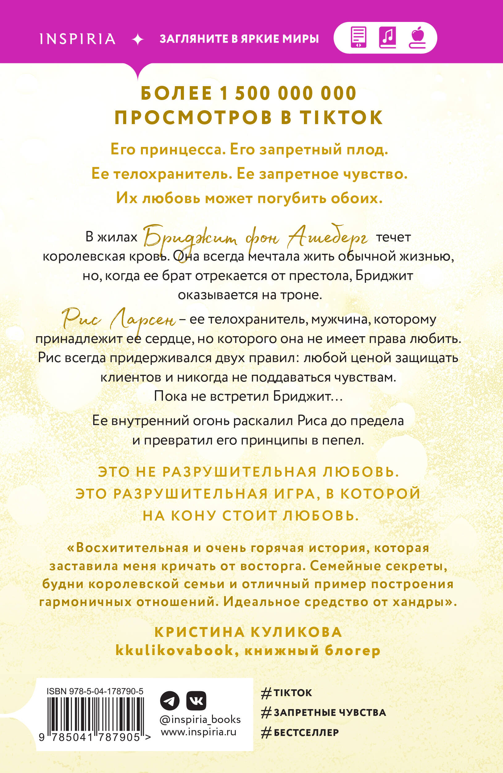 Это не разрушительная любовь. Это разрушительная игра, в которой на кону стоит любовь. «Разрушительная игра» - вторая книга цикла Аны Хуан TWISTED. Цикл рассказывает о четырех очень разных подругах, каждая из которых обретает любовь. Одна книга - одна история любви. Идеально для любителей романов Моны Кастен, Эрин Уатт и Л. Дж. Шэн. Покет большого формата, запечатанные клапаны с изображениями главных героев, дифракционная фольга на обложке и подарок-сюрприз только в первом тираже. В жилах Бриджит фон Ашеберг течет королевская кровь. Она всегда мечтала жить обычной жизнью, но когда ее брат отрекается от престола, Бриджит оказывается на троне. Рис Ларсен - ее телохранитель, мужчина, которому принадлежит ее сердце, но которого она не имеет права любить. Рис всегда придерживался двух правил: любой ценой защищать клиентов и никогда не поддаваться чувствам. Пока не встретил Бриджит… Ее внутренний огонь раскалил Риса до предела и превратил его принципы в пепел. «Восхитительная и очень горячая история, которая заставила меня кричать от восторга. Семейные секреты, будни королевской семьи и отличный пример построения гармоничных отношений. Идеальное средство от хандры». - Кристина Куликова (kkulikovabook), книжный блогер| Издательство | ООО "Издательство "Эксмо" |
