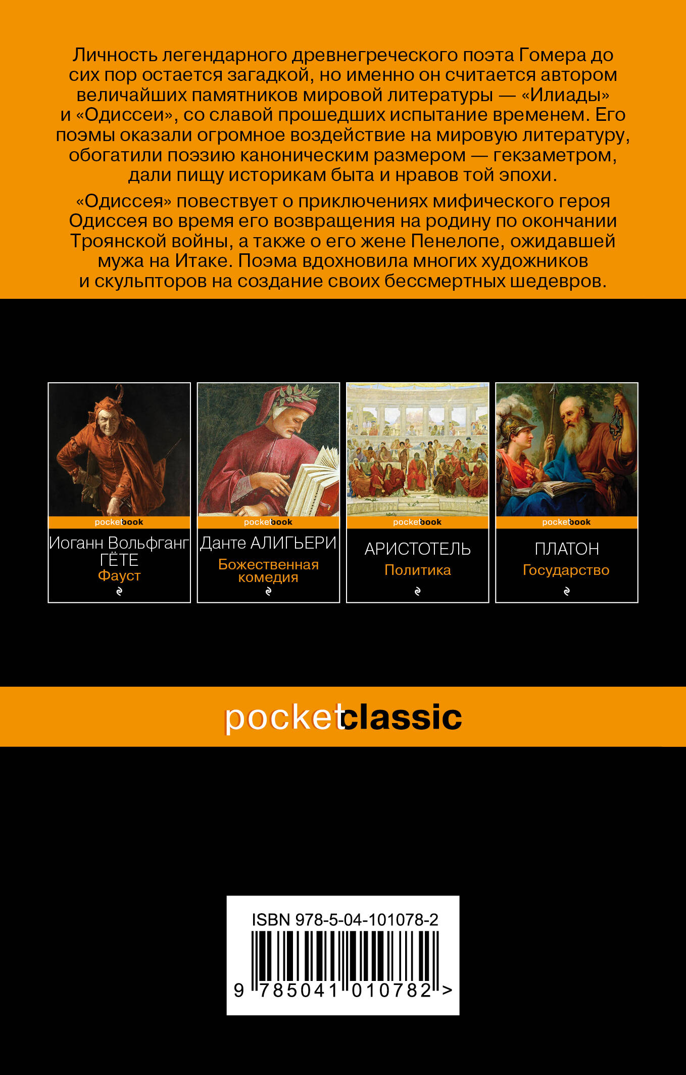 Бессмертная поэма великого древнегреческого поэта повествует о странствиях Одиссея. Троянская война окончена, и хитроумный царь Итаки устремляется к родным берегам, где остались его жена Пенелопа и сын Телемах. Однако путь домой долог и полон приключений: легендарному герою предстоит вырваться из плена циклопа Полифема, навлечь на себя гнев Посейдона, побывать в стране людоедов и на острове волшебницы Кирки, проплыть между Сциллой и Харибдой... Сюжеты мифов и легенд, к которым обратился Гомер в «Одиссее», стали достоянием мировой культуры, а поэма вдохновила многих художников и скульпторов на создание своих бессмертных шедевров. Издание снабжено примечаниями и словарем мифологических и географических названий и имен.| Издательство | ООО "Издательство "Эксмо" |