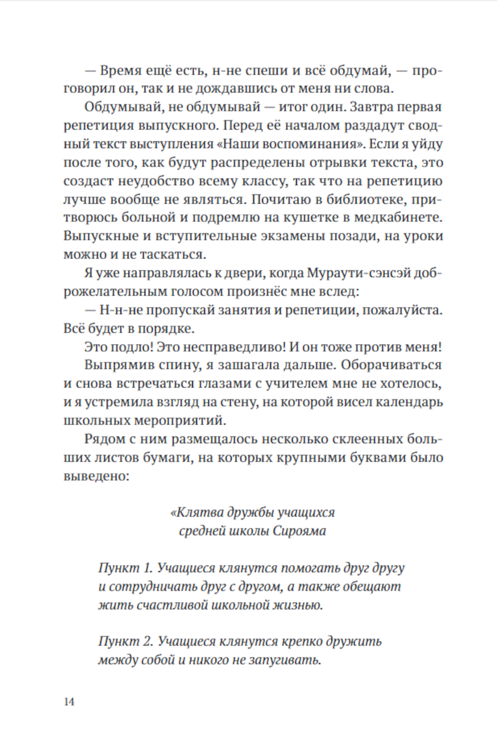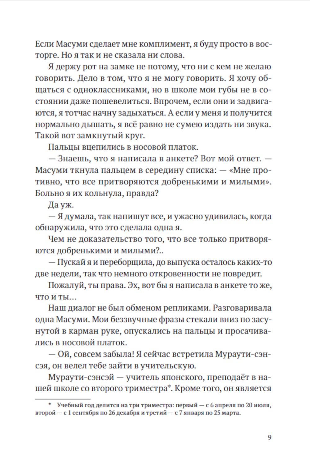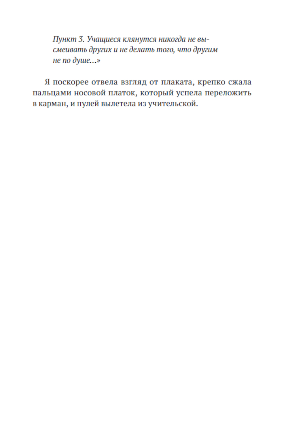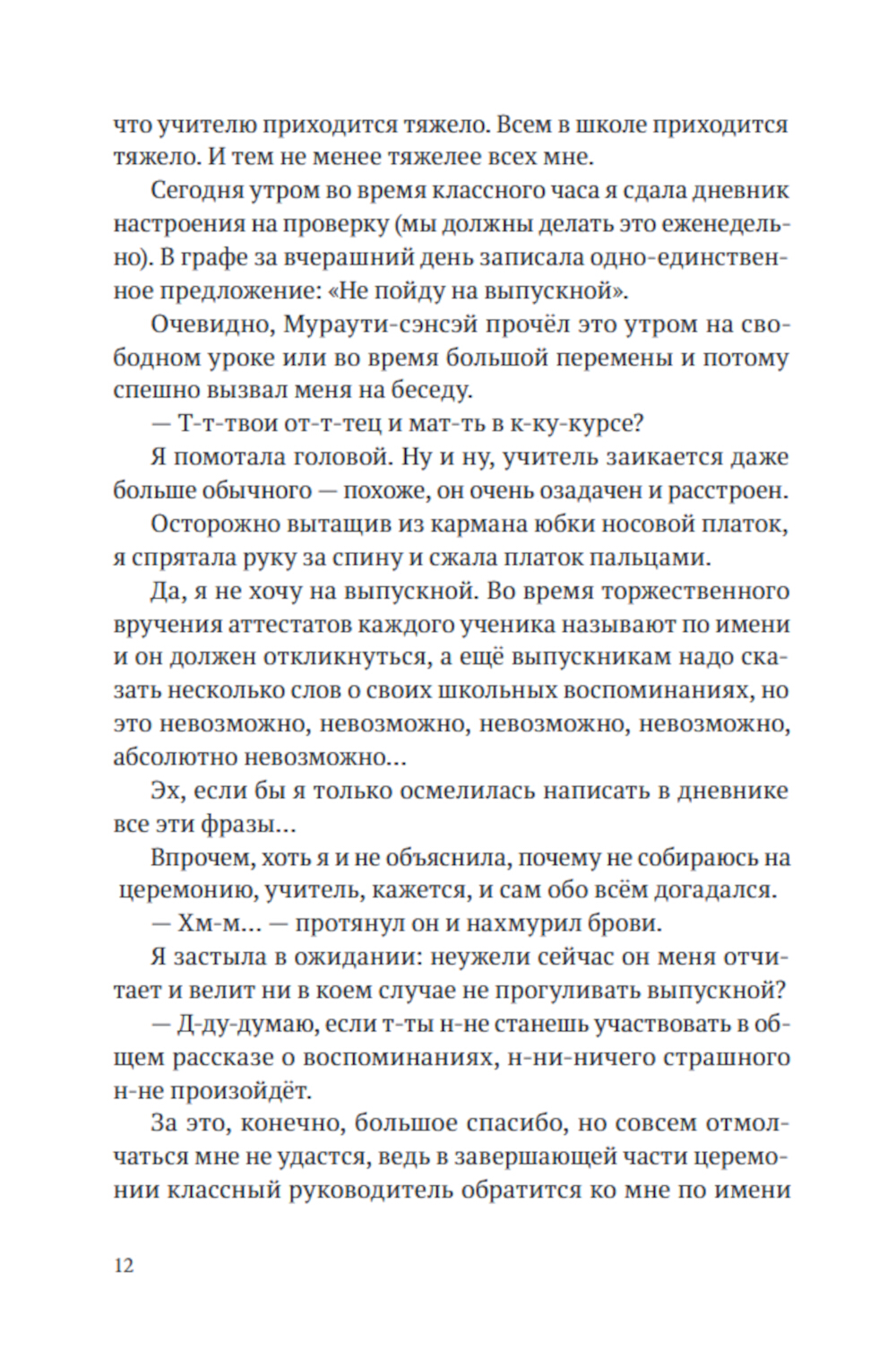 Теперь-то я уже знаю, что по-настоящему страшно не в школе, а в мире взрослых, который населён нормальными людьми, когда-то окончившими школу. В средней школе сложно. Страшно. Горько. И одиноко. Сложно не иметь возможности выразить чувства. Страшно, что внутри происходит что-то, чего ни ты сам, ни окружающие не могут понять. Горько и одиноко потому, что ненавидишь весь мир. А он, похоже, отвечает взаимностью.| Издательство | Поляндрия Принт |