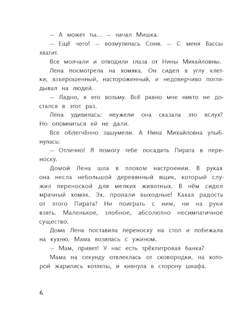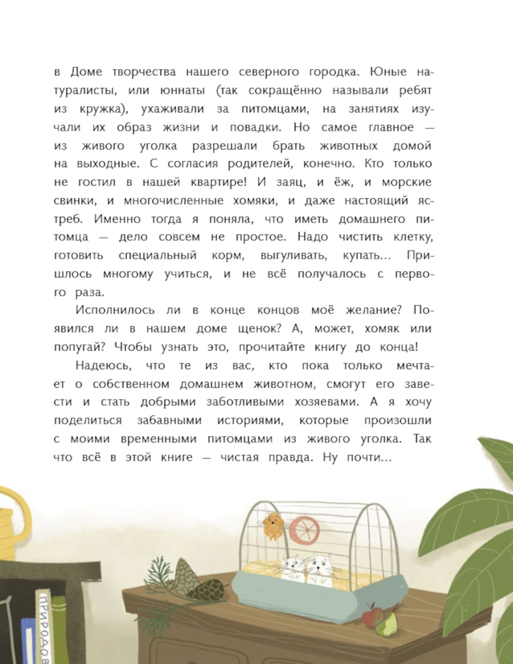 Собираешься завести домашнее животное? Отличная идея! А мама разрешила? Наверное, придётся сначала доказать ей, что ты ответственный хозяин. Об удачах и промахах, взлётах и падениях в нелёгком деле ухода за питомцами узнаешь из приключений Лены, которая брала на выходные из живого уголка хомячка и черепашку, ястреба и ужа и ещё много кого. Убедила ли она маму, узнаешь, дочитав историю до конца. А ещё в книге найдутся советы по уходу за самыми разными животными! Для младшего школьного возраста.| Издательство | Абраказябра |