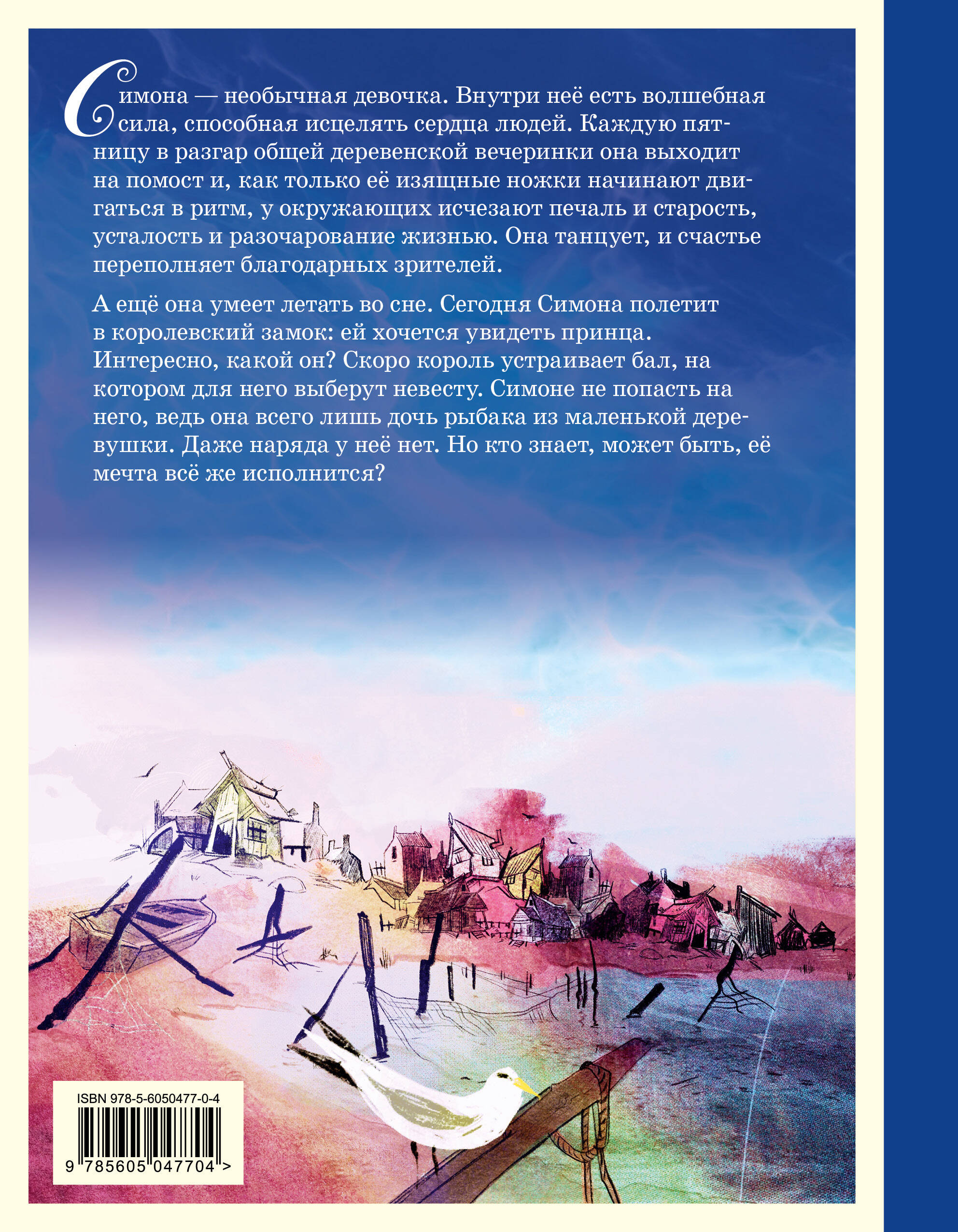 Симона необычная девочка - внутри неё есть волшебная сила, способная исцелять сердца людей. Каждое воскресенье в разгар общей деревенской вечеринки она выходит на помост, и как только её изящные ножки начинают двигаться в ритм, у окружающих исчезают печаль и старость, усталость и разочарование жизнью. Она танцует, и счастье переполняет благодарных зрителей. А ещё она умеет летать во сне. Сегодня Симона полетит в королевский замок: ей хочется увидеть принца. Интересно, какой он? Скоро король устраивает бал, на котором для него выберут невесту. Симоне не попасть на него, ведь она всего лишь дочь рыбаков из маленькой деревушки. Даже наряда у нее нет. Но кто знает, может быть, её мечта все же исполнится? О чем книга? * Об искусстве, которое способно исцелить и подарить надежду. * Об отваге и мужестве перед трудностями. * О твёрдом характере, который помогает отстоять свою мечту вопреки чужому мнению. * О море, таком непредсказуемом, дарующем и отнимающем. Для детей младшего и среднего школьного возраста, а также их родителей.| Издательство | ООО "Издательство "Эксмо" |