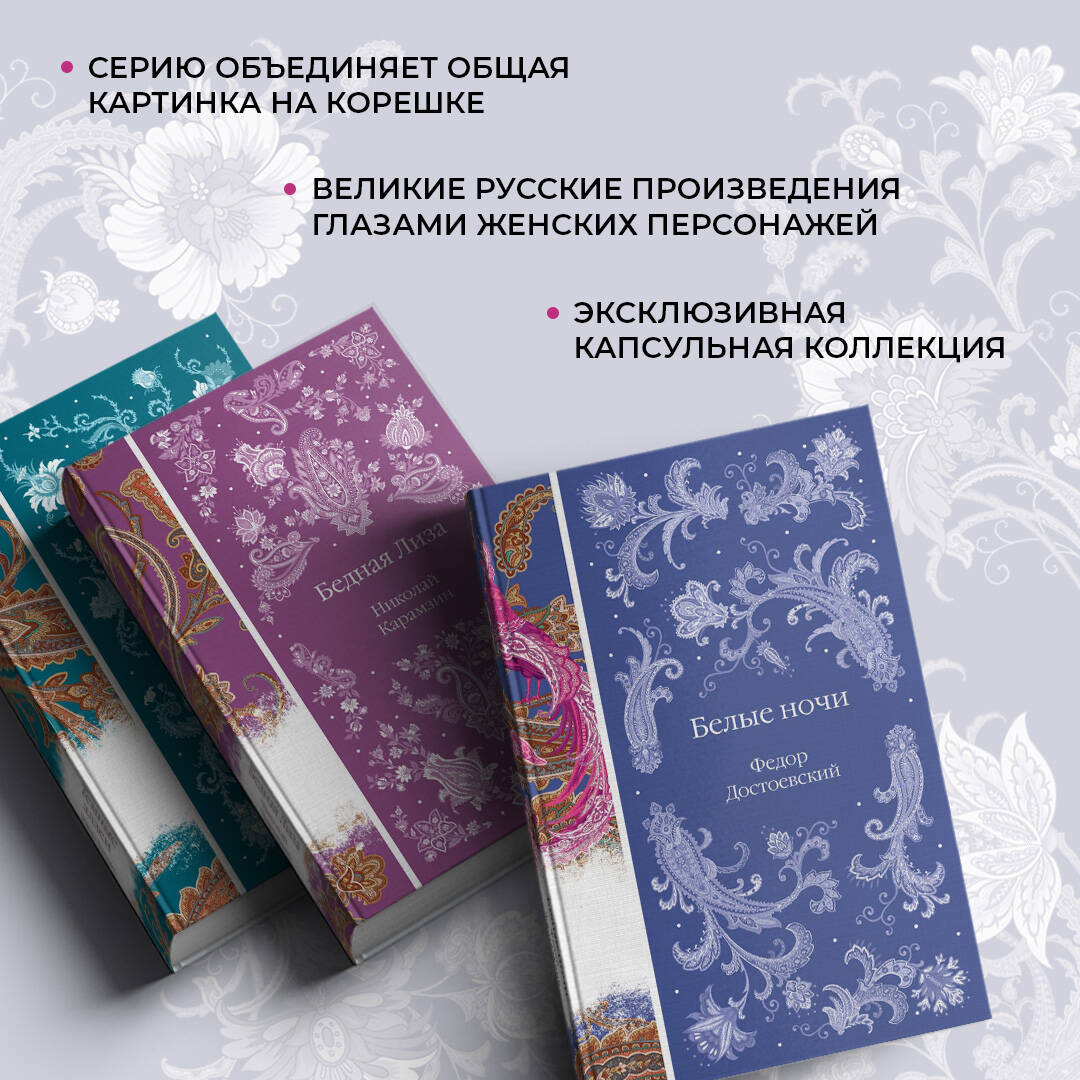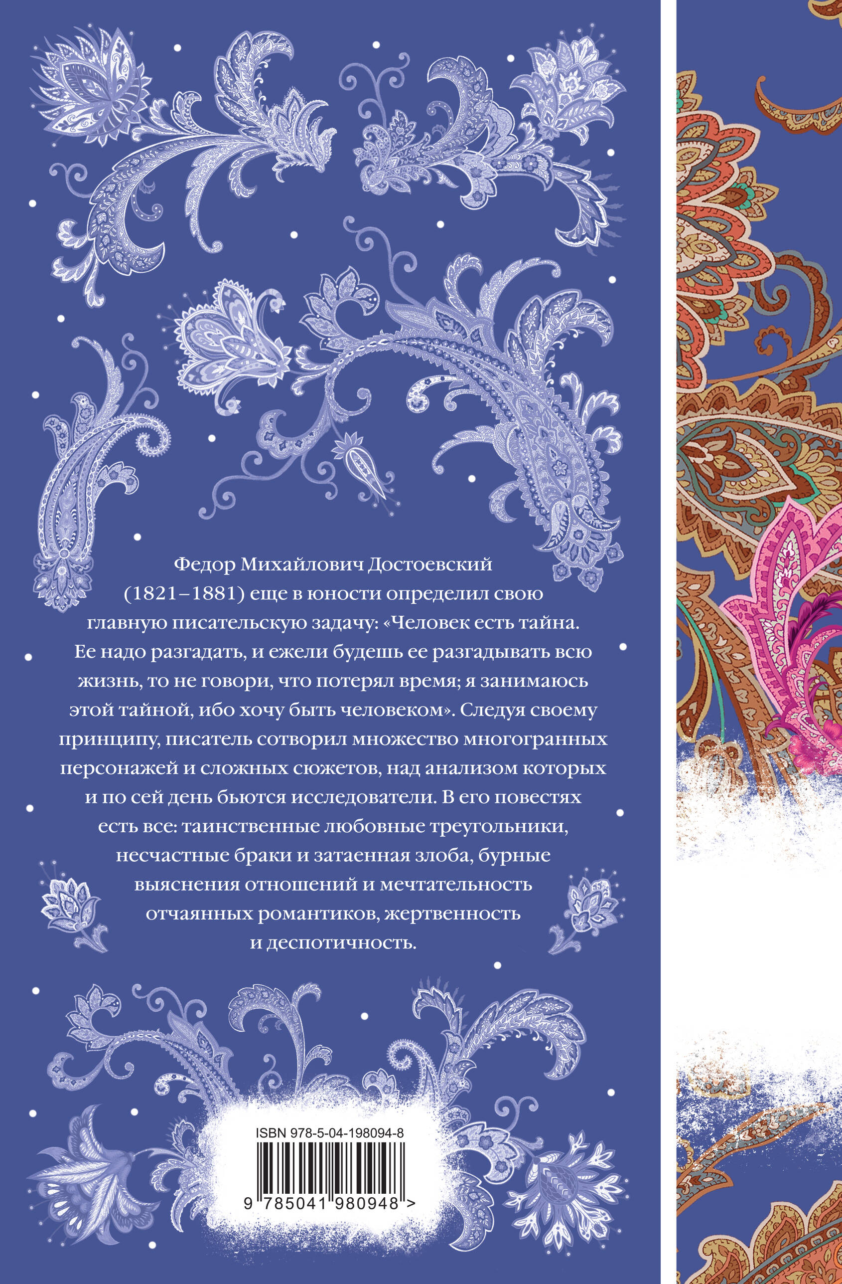 Серия «Элегантная русская классика» предлагает взглянуть на великие произведения глазами женских персонажей. Любовные переживания, роковые ошибки, сила духа и поиски справедливости - все, чем славится классическая русская литература, в страстном ярком дизайне. Корешки книг собирают единый традиционный платочный орнамент «пэйсли». Федор Михайлович Достоевский (1821-1881) еще в юности определил свою главную писательскую задачу: «Человек есть тайна. Ее надо разгадать, и ежели будешь ее разгадывать всю жизнь, то не говори, что потерял время; я занимаюсь этой тайной, ибо хочу быть человеком». Следуя своему принципу, писатель сотворил множество многогранных персонажей и сложных сюжетов, над анализом которых и по сей день бьются исследователи. В его повестях есть всё: таинственные любовные треугольники, несчастные браки и затаенная злоба, бурные выяснения отношений и мечтательность отчаянных романтиков, жертвенность и деспотичность. В книгу вошли повести «Хозяйка» (1847), «Неточка Незванова» (1849), «Белые ночи. Сентиментальный роман» (1848) и «Кроткая» (1876).| Издательство | ООО "Издательство "Эксмо" |