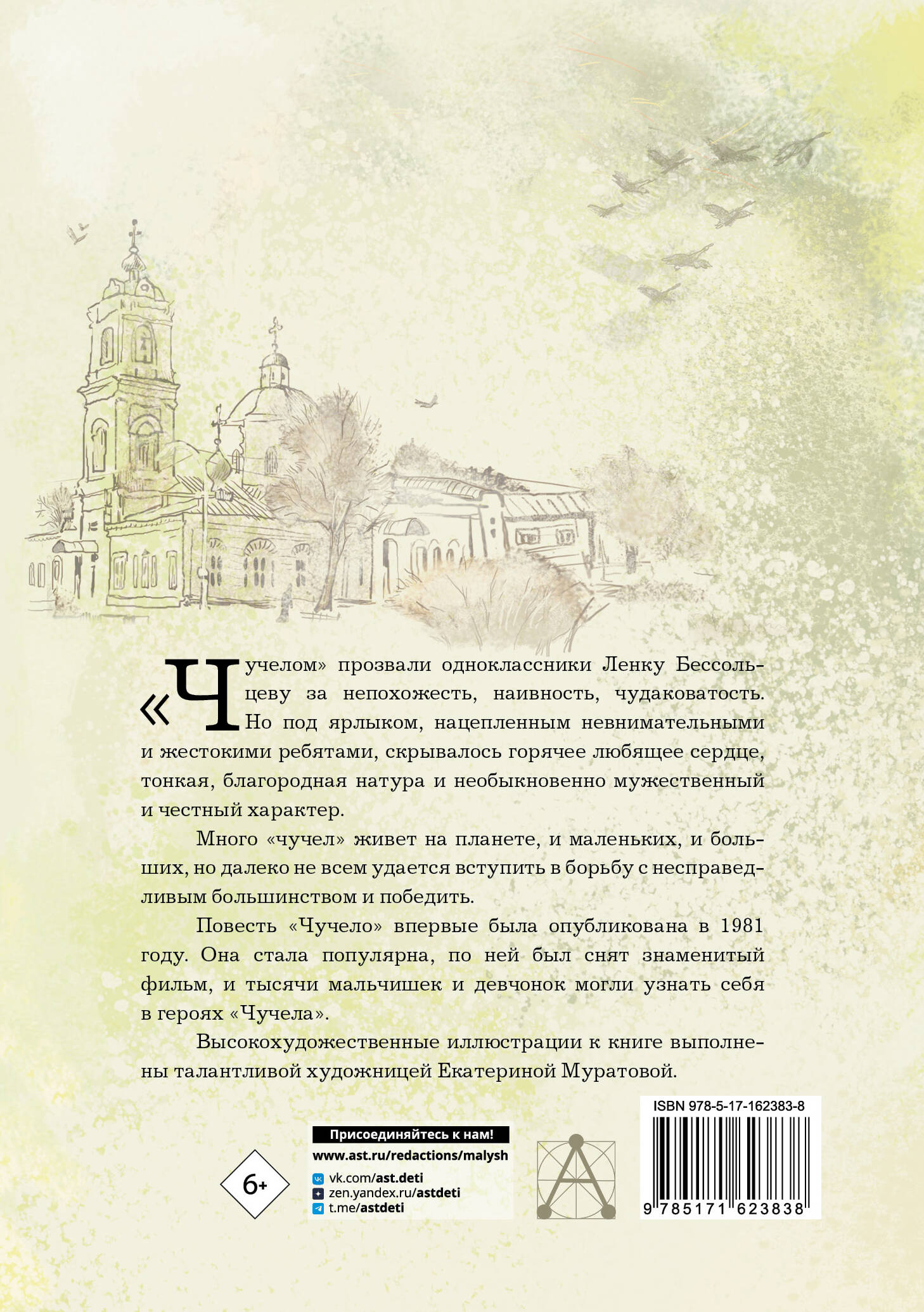 Повесть «Чучело» впервые была опубликована 36 лет назад. Она стала популярна, по ней был снят знаменитый фильм, и тысячи мальчишек и девчонок могли узнать себя в героях «Чучела». «Чучелом» прозвали одноклассники Ленку Бессольцеву за непохожесть, наивность, чудаковатость. Но под ярлыком, нацепленным невнимательными и жестокими ребятами, скрывалось горячее, любящее сердце, тонкая, благородная натура и необыкновенно мужественный и честный характер. Много «чучел» живет на планете, и маленьких, и больших, но далеко не всем удается вступить в борьбу с несправедливым большинством и победить. Высокохудожественные иллюстрации в книге выполнены талантливой художницей Екатериной Муратовой. Повесть «Чучело» впервые была опубликована 36 лет назад. Она стала популярна, по ней был снят знаменитый фильм, и тысячи мальчишек и девчонок могли узнать себя в героях «Чучела».| Издательство | Издательство "АСТ" |