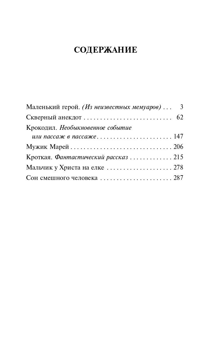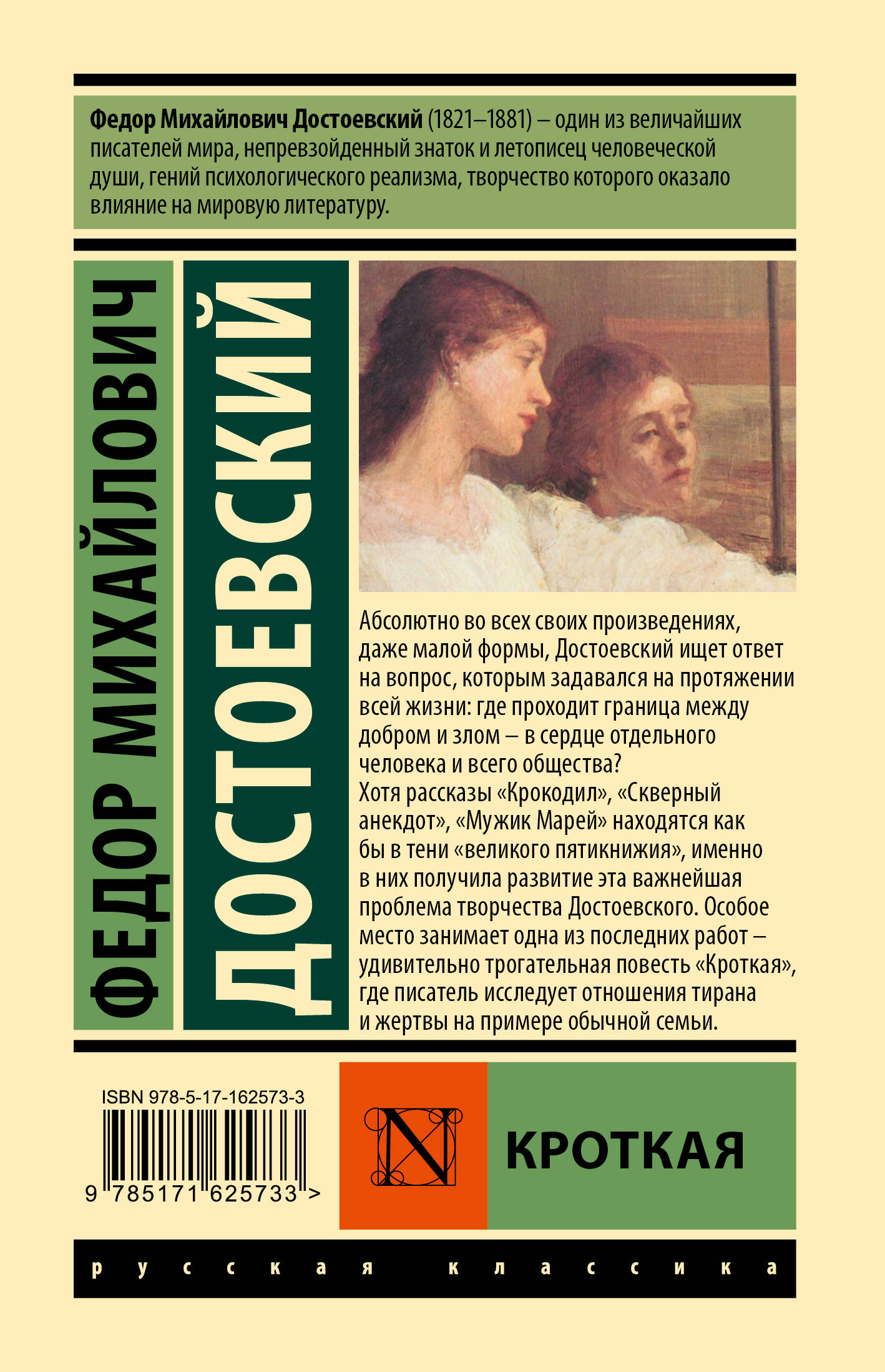 Абсолютно во всех своих произведениях, даже малой формы, Достоевский ищет ответ на вопрос, которым задавался на протяжении всей своей жизни: где проходит граница между добром и злом - в сердце отдельного человека и всего общества? Хотя рассказы "Крокодил", "Скверный анекдот", "Мужик Марей" находятся как бы в тени "великого пятикнижия", но именно в них получила развитие эта важнейшая проблема творчества Достоевского. Особое место занимает одна из последних работ - удивительно трогательная повесть "Кроткая", где писатель исследует отношения тирана и жертвы на примере обычной семьи.| Издательство | Издательство "АСТ" |