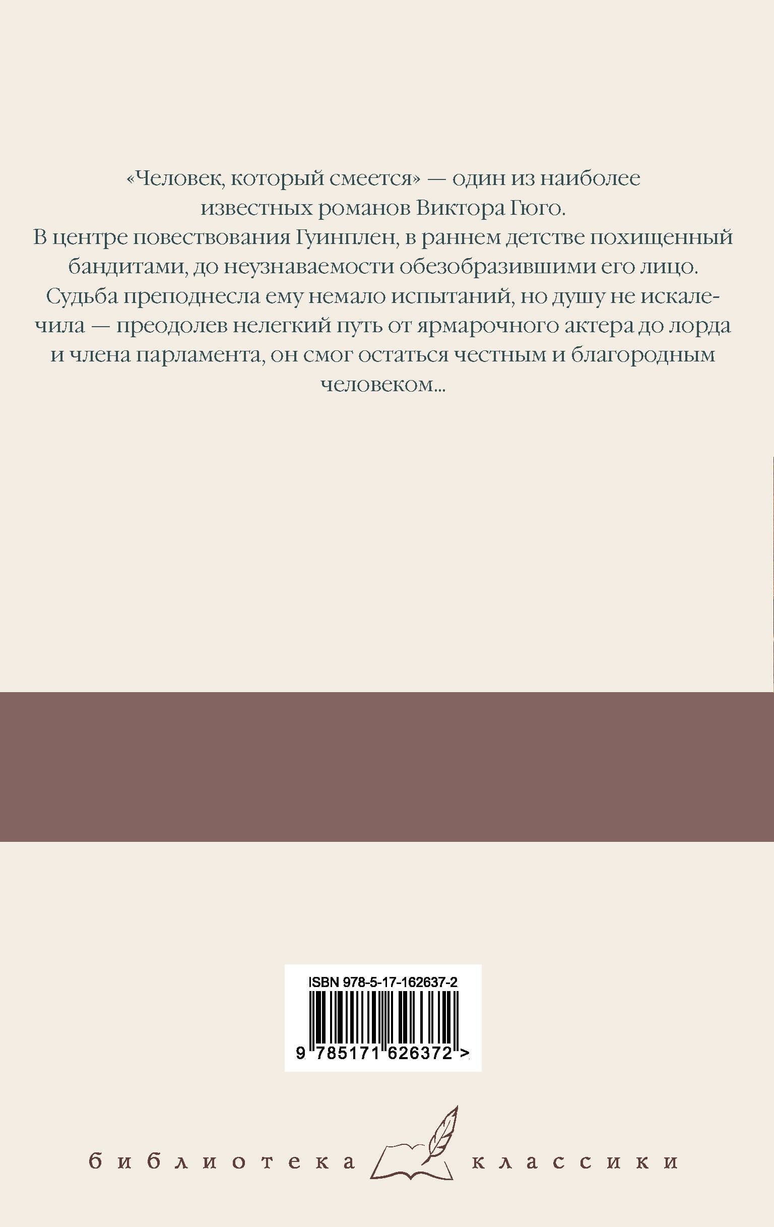 "Человек, который смеется" - один из наиболее известных романов Виктора Гюго. В центре повестования Гуинплен, в раннем детстве похищенный бандитами, до неузнаваемости обезобразившими его лицо. Судьба преподнесла ему немало испытаний, но душу не искалечила - преодолев нелегкий путь от ярмарочного актера до лорда и члена парламента, он смог остаться честным и благородным человеком...