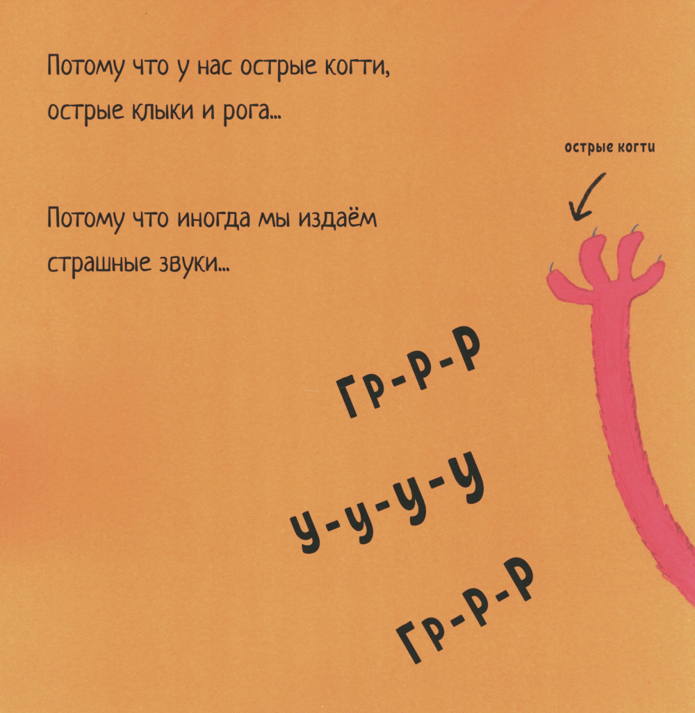 Всё! Хватит! Надоело, что вы боитесь нас. Остановитесь! Мы ведь тоже живые, и у нас тоже есть чувства! Мы расстраиваемся, и грустим, и порой чувствуем себя одинокими... По секрету - мы даже боимся темноты. Конечно, если она первой нас не испугается. Пожалуйста, полюбите нас и перестаньте уже бояться... Обнимемся?.. Ну, давайте же обнимемся!| Издательство | Феникс |