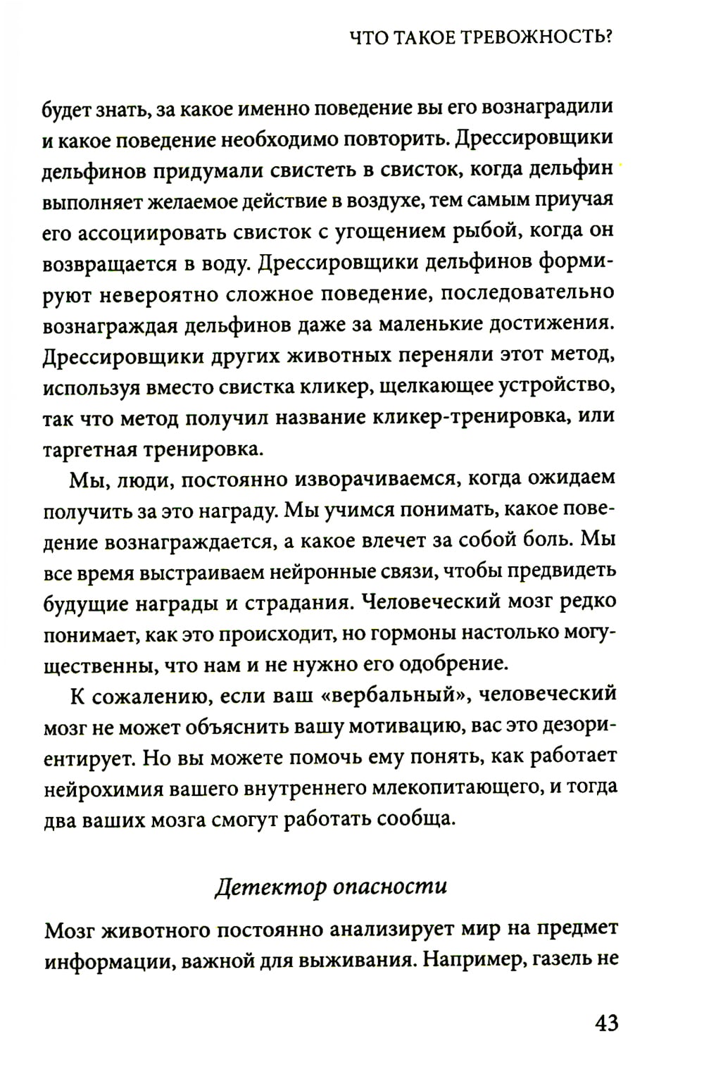 Тревога... Медленно приближаясь, она поднимается высокой волной и обрушивается нестерпимым чувством угрозы. Все эти ощущения спровоцированы гормоном стресса - кортизолом. Он преумножает наши страхи и... защищает нас. Тревожность - это естественная природная сигнализация, доставшаяся нам от наших предков - млекопитающих, которая предупреждает об опасности. К сожалению, в современном мире она срабатывает слишком часто, даже если нам ничто не угрожает. Тревожность естественна для живого организма, а вот спокойствию нужно учиться. Лоретта Бройнинг - основатель Inner Mammal Institute (Института внутреннего млекопитающего), профессор Калифорнийского университета, автор нескольких бестселлеров - предложит вам простой метод переключения мозга с кортизольной спирали тревоги на спираль счастья. Вы научитесь: фокусироваться на своих потребностях, решать проблемы поэтапно, вознаграждать себя за сделанные шаги. Спокойствие, только спокойствие! Вы сможете укротить свою тревогу всего за 22 минуты!| Издательство | Портал |