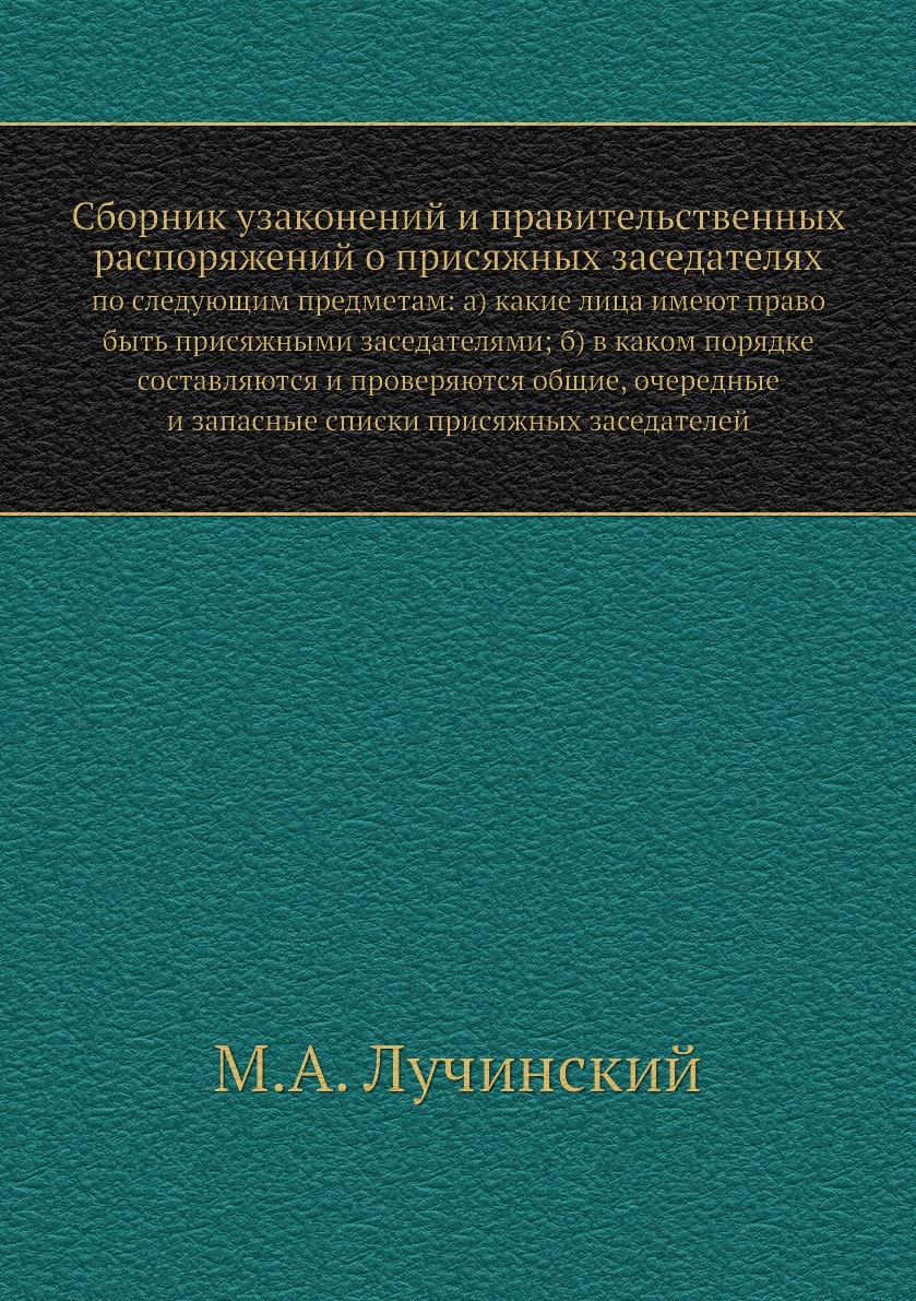 Эта книга - репринт оригинального издания (издательство "Москва", 1881 год), созданный на основе электронной копии высокого разрешения, которую очистили и обработали вручную, сохранив структуру и орфографию оригинального издания. Редкие, забытые и малоизвестные книги, изданные с петровских времен до наших дней, вновь доступны в виде печатных книг. Суд присяжных заседателей, по выражению законодателя, может принести желаемую пользу тогда только, когда он будет составлен из людей безукоризненной нравственности и заслуживающих полное и безусловное доверие общества. Лица эти, кому вверены высшие интересы правосудия и охранение общественной и частной безопасности, могут быть избираемы только из тех, которые будут внесены в общий список имеющих право быть присяжными заседателями.