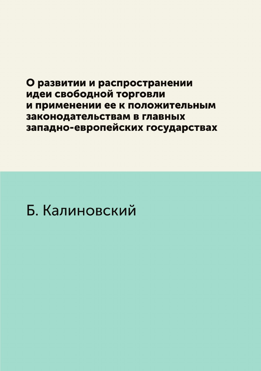 Аннотация: О развитии и распространении идеи свободной торговли и применении ее к положительным законодательствам в главных западно-европейских государствах