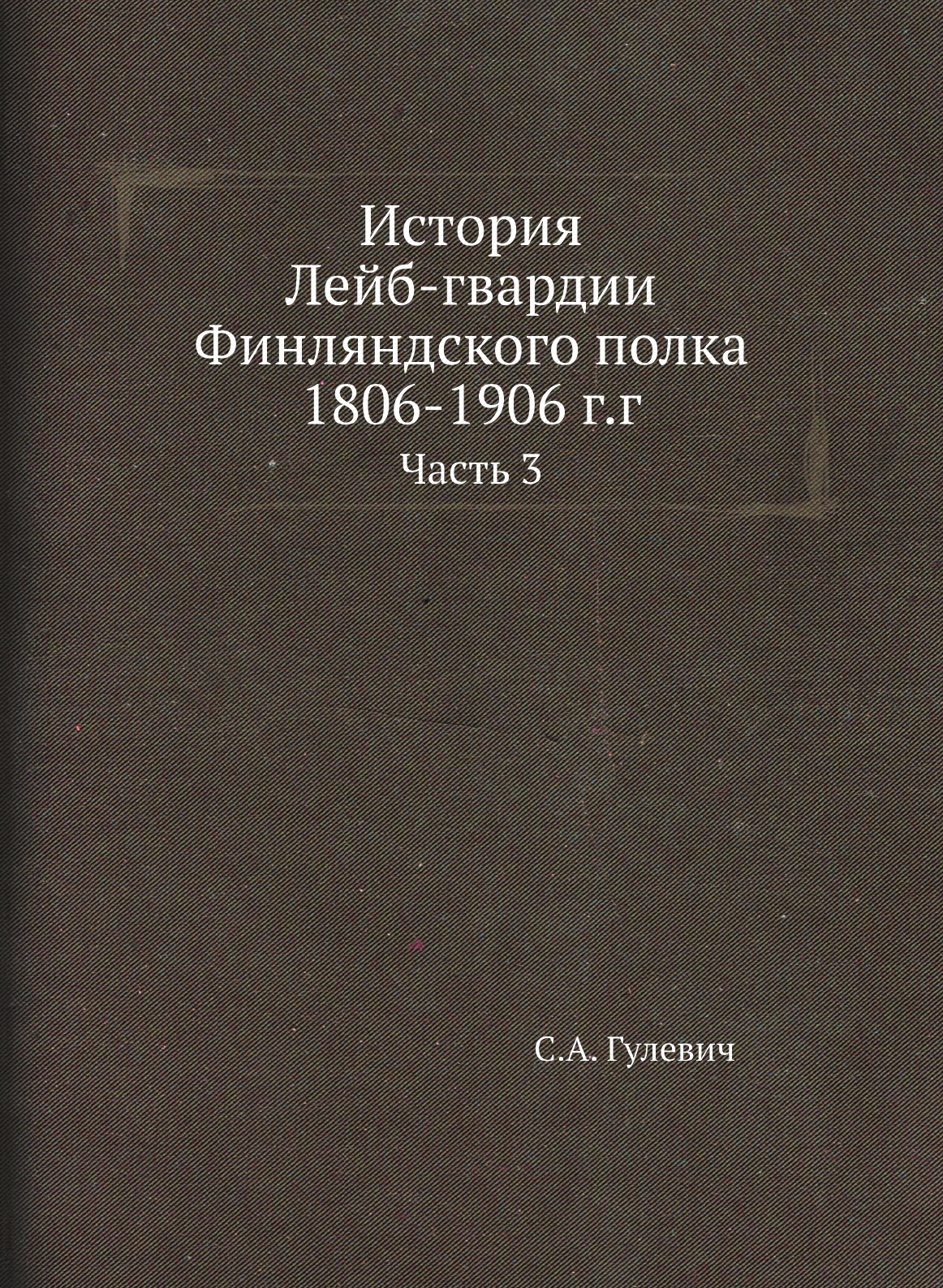 Эта книга - репринт оригинального издания (издательство "Экономическая типо-литография", 1906 год), созданный на основе электронной копии высокого разрешения, которую очистили и обработали вручную, сохранив структуру и орфографию оригинального издания. Редкие, забытые и малоизвестные книги, изданные с петровских времен до наших дней, вновь доступны в виде печатных книг. Фундаментальное пятитомное издание было приурочено к 100-летнему юбилею полка. Решение о подготовке данного труда было принято в октябре 1902 г. Богатый военно-исторический материал о боевом пути полка охватывает примерно 25 лет по каждому тому. Автором-составителем является С.А. Гулевич (1872-1918). С 1895 г. он служил в чине подпоручика Преображенского полка, а затем капитаном Финляндского полка. Был автором учебника для солдат и ряда изданий истории полка (1909, 1910 и 1913 гг.), дослужился до командира Финляндского полка и чина полковника. В своей работе он опирался на два предшествующих полковых изданий. Данное военно-историческое исследование подготовлено на высоком научном уровне, снабжено значительным количеством иллюстраций и повествует не только о действиях полка, но и развитии вооруженных сил России в течение целого столетия.