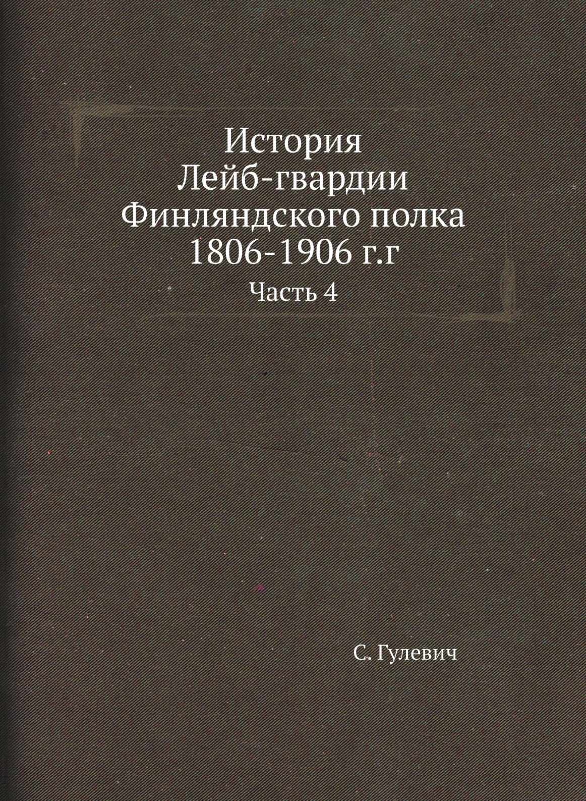Эта книга - репринт оригинального издания 1907 года, созданный на основе электронной копии высокого разрешения, которую очистили и обработали вручную, сохранив структуру и орфографию оригинального издания. Редкие, забытые и малоизвестные книги, изданные с петровских времен до наших дней, вновь доступны в виде печатных книг. Фундаментальное пятитомное издание было приурочено к 100-летнему юбилею полка. Решение о подготовке данного труда было принято в октябре 1902 г. Богатый военно-исторический материал о боевом пути полка охватывает примерно 25 лет по каждому тому. Автором-составителем является С.А. Гулевич (1872-1918). С 1895 г. он служил в чине подпоручика Преображенского полка, а затем капитаном Финляндского полка. Был автором учебника для солдат и ряда изданий истории полка (1909, 1910 и 1913 гг.), дослужился до командира Финляндского полка и чина полковника. В своей работе он опирался на два предшествующих полковых изданий. Данное военно-историческое исследование подготовлено на высоком научном уровне, снабжено значительным количеством иллюстраций и повествует не только о действиях полка, но и развитии вооруженных сил России в течение целого столетия.