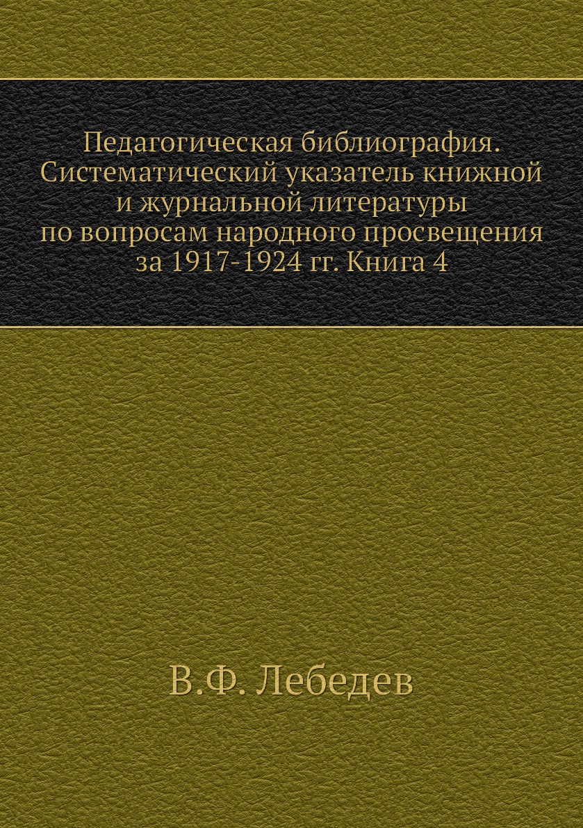 Аннотация: Педагогическая библиография. Систематический указатель книжной и журнальной литературы по вопросам народного просвещения за 1917-1924 гг. Книга 4