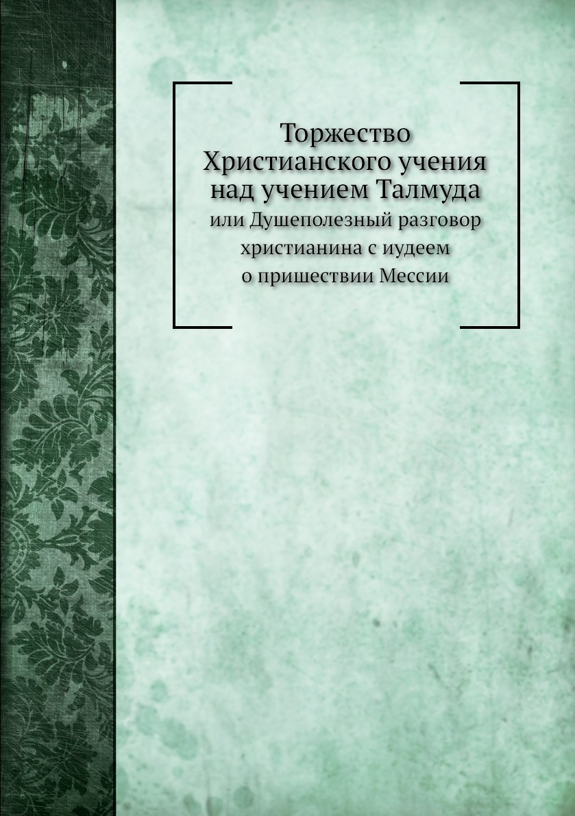 Эта книга - репринт оригинального издания (издательство "Издание священника магистра Василия Гречулевича", 1859 год), созданный на основе электронной копии высокого разрешения, которую очистили и обработали вручную, сохранив структуру и орфографию оригинального издания. Редкие, забытые и малоизвестные книги, изданные с петровских времен до наших дней, вновь доступны в виде печатных книг. Торжество Христианского учения над учением Талмуда или Душеполезный разговор христианина с иудеем о пришествии Мессии.