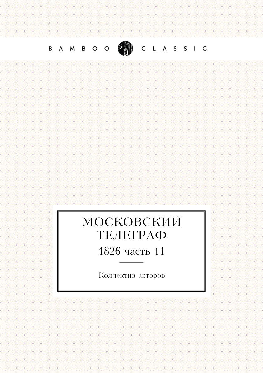 Эта книга - репринт оригинального издания (издательство "Университетская типография", 1826 год), созданный на основе электронной копии высокого разрешения, которую очистили и обработали вручную, сохранив структуру и орфографию оригинального издания. Редкие, забытые и малоизвестные книги, изданные с петровских времен до наших дней, вновь доступны в виде печатных книг. Первый русский энциклопедический журнал. Выходил в 1825-1834 гг. С 1826 г. «Московский телеграф» регулярно печатает статьи в либеральном духе о политических событиях вне России, с 1828 г. выступает в защиту «среднего сословия» и против дворянских привилегий, начинает полемику с «литературной аристократией» Пушкиным и его кругом. Приобретший репутацию политически неблагонадёжного издания, закрыт в 1834 г.Репринтное издание по технологии print-on-demand с оригинала 1826 года