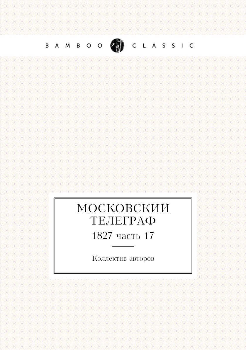Эта книга - репринт оригинального издания (издательство "Университетская типография", 1827 год), созданный на основе электронной копии высокого разрешения, которую очистили и обработали вручную, сохранив структуру и орфографию оригинального издания. Редкие, забытые и малоизвестные книги, изданные с петровских времен до наших дней, вновь доступны в виде печатных книг. Первый русский энциклопедический журнал. Выходил в 1825-1834 гг. С 1826 г. «Московский телеграф» регулярно печатает статьи в либеральном духе о политических событиях вне России, с 1828 г. выступает в защиту «среднего сословия» и против дворянских привилегий, начинает полемику с «литературной аристократией» Пушкиным и его кругом. Приобретший репутацию политически неблагонадёжного издания, закрыт в 1834 г.Репринтное издание по технологии print-on-demand с оригинала 1827 года