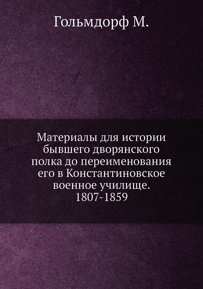 Эта книга - репринт оригинального издания (издательство "Тип. штаба войск гвардии и Петербургского военного округа", 1882 год), созданный на основе электронной копии высокого разрешения, которую очистили и обработали вручную, сохранив структуру и орфографию оригинального издания. Редкие, забытые и малоизвестные книги, изданные с петровских времен до наших дней, вновь доступны в виде печатных книг. Издание представляет собой сборник различных данных по истории Дворянского полка, готовившего кадры для офицерского корпуса Российской императорской армии с 1807 по 1855 годы. Материалы сборника были подготовлены одним из выпускников Дворянского полка полковником артиллерии Михаилом Густавовичем Гольмдорфом, более 20 лет посвятившим сбору сведений о судьбе выпускников этого учебного заведения.Дворянский полк был образован согласно рескрипту императора Александра I в марте 1807 года и в первый год своего существования назывался Волонтерский корпус. Базой для его формирования послужил 2-й кадетский корпус в Петербурге, которым руководил генерал-майор А.А. Клейнмихель. Главной задачей этого военно-учебного заведения являлась подготовка отпрысков провинциального дворянства, достигших 16-летнего возраста, для прохождения воинской службы и дальнейшего производства их в офицеры. В Волонтерный корпус принимали без экзаменов. Главным предметом обучения были строевые занятия. В первый год формирования Дворянского полка было принято около 300 воспитанников. Накануне и в период Отечественной войны 1812 года состоялось 15 выпусков, 1148 воспитанников было произведено в офицеры. В 1816 году впервые устанавливался штат, определивший число воспитанников в 2000 человек. В 1837 году было построено новое здание, приспособленное для классного обучения. Дворянский полк был разделен на 40 классов, установлены курсы: общий 4 года и специальный 2 года. Выпускники этого учебного заведения получали только военную подготовку и ускоренными выпусками направлялись в войска с офицерским чином. С 1833 г. выпуски офицеров из провинциальных кадетских корпусов не производились, а их воспитанников для окончания курса в обязательном порядке переводили в Дворянский полк. До 1851 года в него принимали также детей 13-15 лет и по конкурсному экзамену. 17 апреля 1855 года Дворянский полк, в память своего первого шефа великого князя Константина Павловича был переименован в Константиновский кадетский корпус, а в мае 1859 года он был переименован в Константиновское военное училище, воспитанники которого стали называться юнкерами и находиться на полном казенном содержании. До 1863 года это было единственное военное училище России.