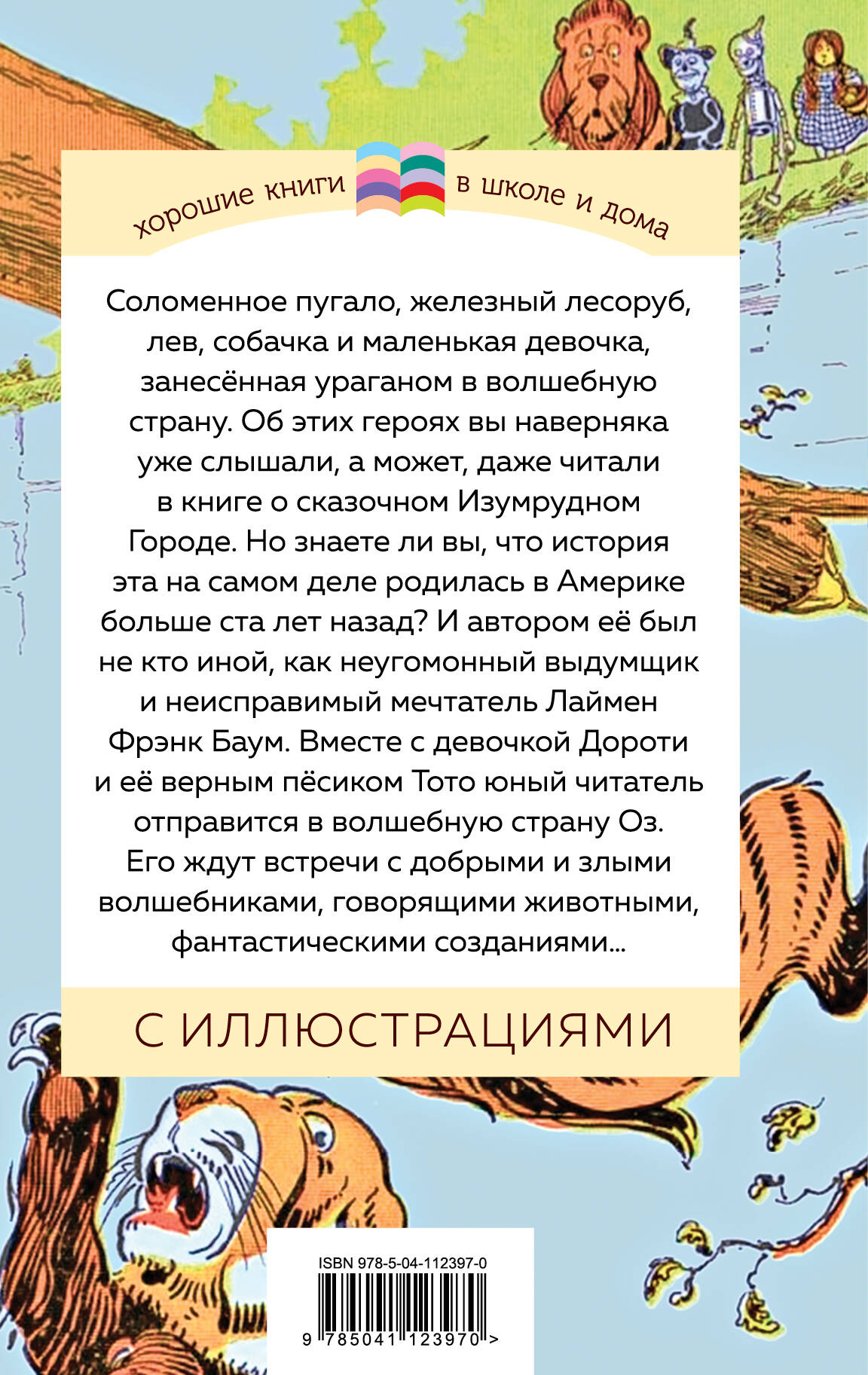 Страшила, Железный Дровосек, Лев, собачка и маленькая девочка, занесённая ураганом в волшебную страну. Об этих героях вы наверняка уже слышали, а может, даже читали в книге о сказочном Изумрудном Городе. Но знаете ли вы, что история эта на самом деле родилась в Америке больше ста лет назад? И автором её был не кто иной, как неугомонный выдумщик и неисправимый мечтатель Лаймен Фрэнк Баум. Вместе с девочкой Дороти и её верным пёсиком Тото юный читатель отправится в волшебную Страну Оз. Его ждут встречи с добрыми и злыми волшебниками, говорящими животными, фантастическими созданиями...| Издательство | Эксмо |