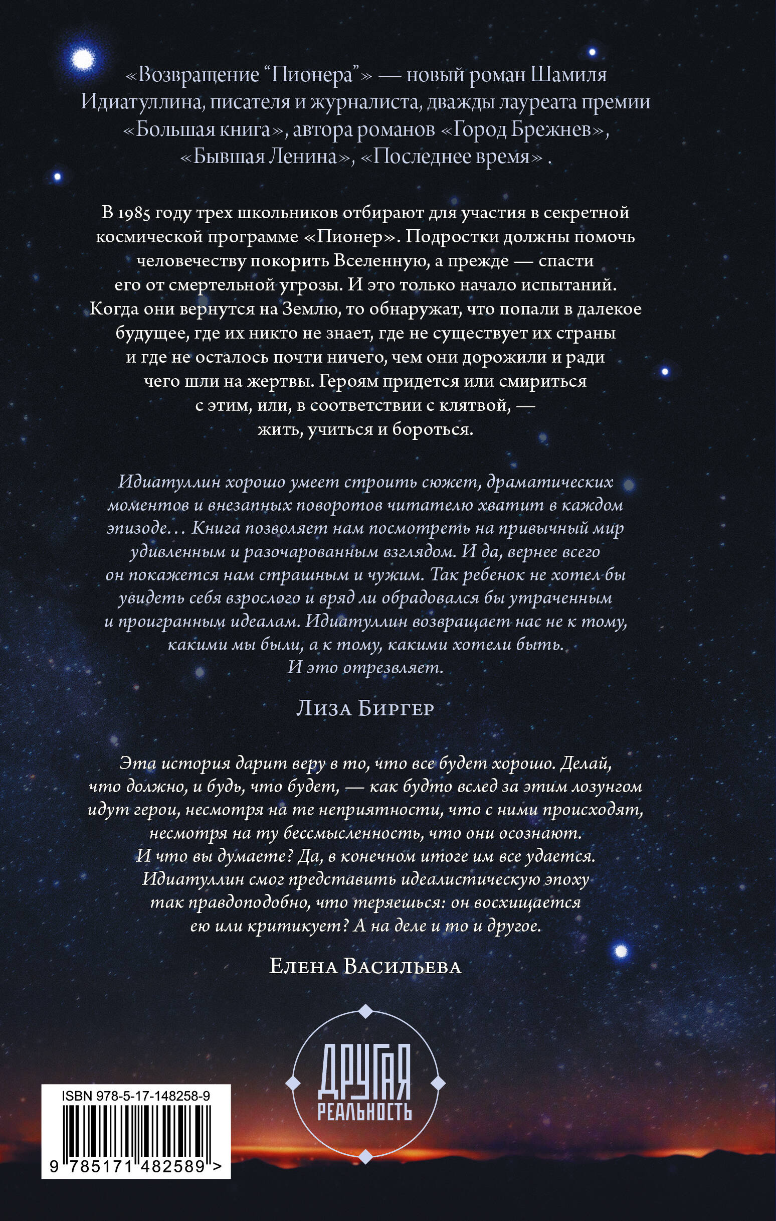 Новая книга автора бестселлера «Город Брежнев». Долгожданное бумажное издание нашумевшего романа о пионерах-попаданцах от дважды лауреата премии «Большая книга». Продолжение серии «Другая реальность»: книга для ценителей остроумной игры с жанром. Ностальгическая фантастика, которая неожиданно превращается в жесткую актуальную прозу. «Возвращение "Пионера"» - шкатулка с двойным дном. Отсылки к классике научной фантастики и советскому кинематографу, срез новейшей истории и «Большое космическое путешествие», но только если бы все было по-честному: правильно и ясно, здорово и вечно. Взрослая история о том, куда приводят детские мечты. 2020-е годы глазами советских школьников. Из уютного ностальгического сай-фая читатели вместе с героями попадают в мир утраченных иллюзий и перевернутых смыслов. Наш современный мир.| Издательство | АСТ |
