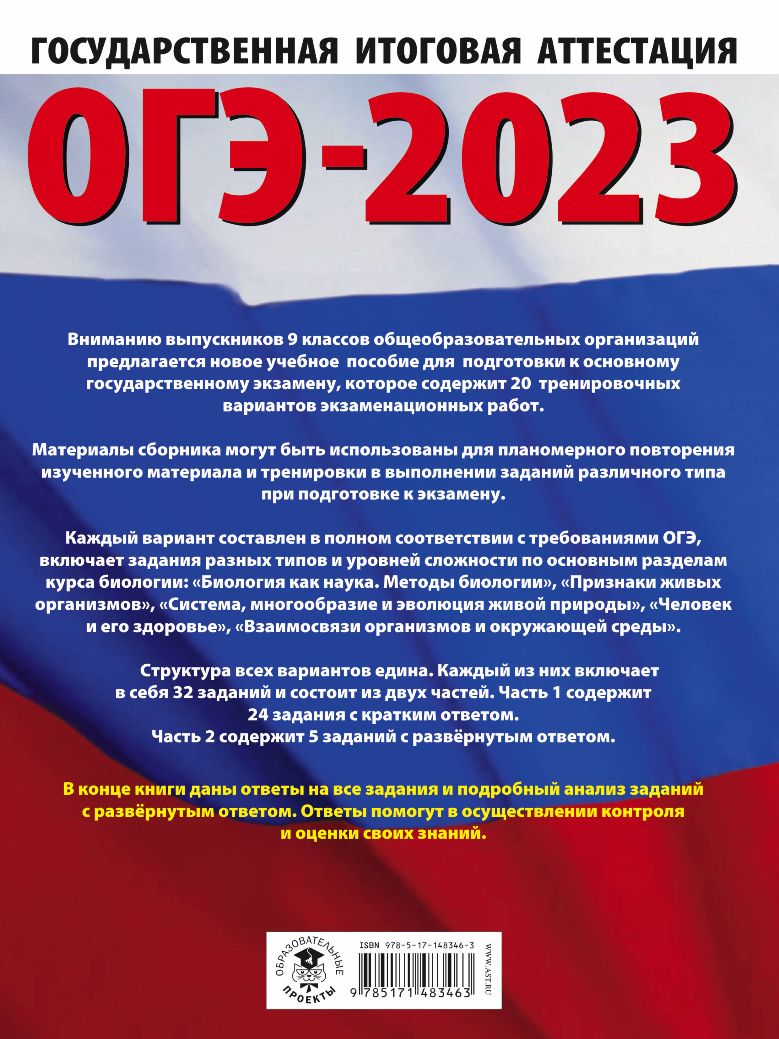 ОГЭ-2023. Биология (60x84/8). 20 тренировочных вариантов экзаменационных работ для подготовки к основному государственному экзамену| Издательство | АСТ |