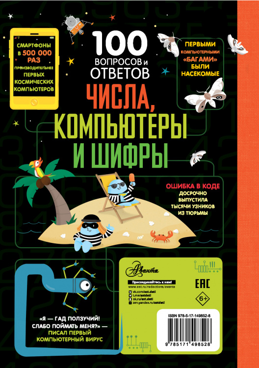 Знаешь ли ты, что современные калькуляторы мощнее компьютера, управлявшего первой высадкой на Луну? Или что первыми компьютерными "багами" были настоящие насекомые? И пока ты читаешь эту строку, уже было отослано более 30 миллионов писем? Эта информативная книга с красочными иллюстрациями содержит удивительные факты и полезную информацию ровно по 100 темам, касающимся чисел, компьютеров и шифров. Ты узнаешь много нового, о чём точно не читал в учебниках, а благодаря инфографике вся сложная информация усвоится легко и быстро. Для среднего школьного возраста.