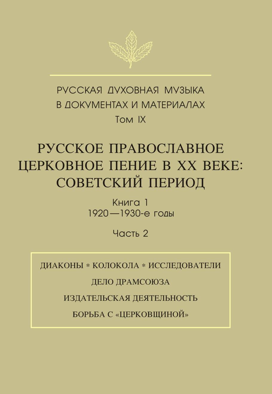 Русская духовная музыка в документах и материалах. Том 9. Русское православное церковное пение в XX веке. Советский период. Книга 1. 1920-1930-е годы. Часть 2
