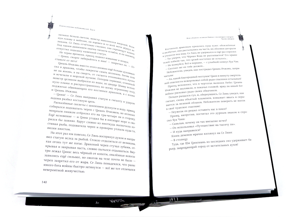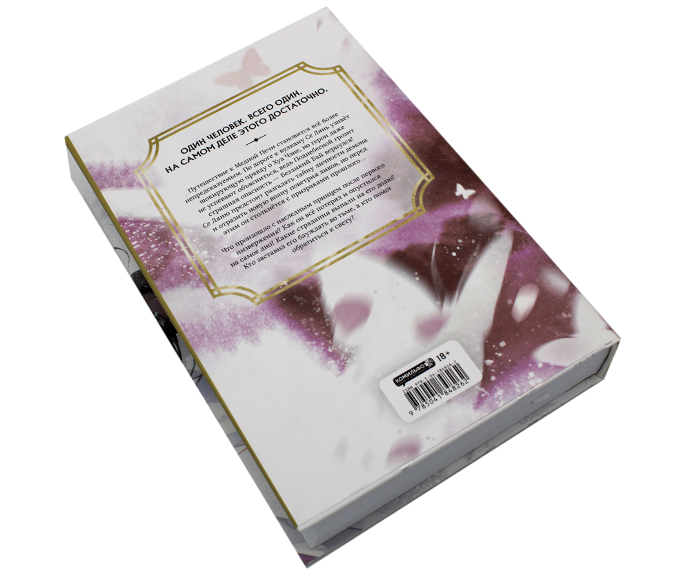 Комплект состоит из двух последних томов «Благословение небожителей». В пятом томе путешествие к Медной Печи становится всё более непредсказуемым. По дороге к вулкану Се Лянь узнаёт шокирующую правду о Хуа Чэне, но герои даже не успевают объясниться, ведь Поднебесной грозит страшная опасность - Безликий Бай вернулся! Се Ляню предстоит разгадать тайну личности демона и отразить новую волну поветрия ликов, но перед этим он столкнётся с призраками прошлого... Что произошло с наследным принцем после первого низвержения? Как он всё потерял и опустился на самое дно? Какие страдания выпали на его долю? Кто заставил его блуждать во тьме, а кто помог обратиться к свету? В шестой книге чтобы спасти три мира от существа, что сильнее всех ныне живущих, Се Ляню с Хуа Чэном придётся заручиться поддержкой не только старых друзей, но и старых врагов. Всё решится на мосту, что прежде вёл в Небеса, а теперь обрывается над огненной пропастью. Смогут ли герои, даже объединив силы, одолеть противника? И какова будет цена победы?| Издательство | Эксмо |
