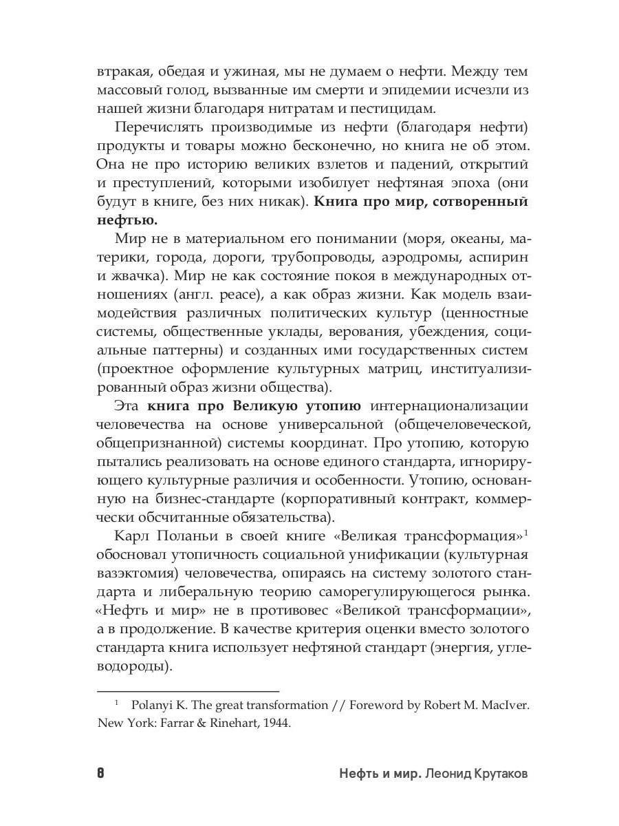 «Каменное масло»,«черное золото», «кровь земли»… - так много имен, созданных в мучительной попытке осмыслить природу таинственной темной субстанции. Люди знали о нефти еще в бронзовом веке, однако лишь 150 лет назад она стала критически важным ресурсом - ресурсом, способным двигать границы государств, возносить и сокрушать идеологии, уничтожать народы - формировать будущее. Политолог Леонид Крутаков подробно (шаг за шагом) объясняет, как на смену углеводам пришли углеводороды, как небольшая группа людей вознамерилась получить в свои руки всю власть земных недр и как была создана новая модель мира, в рамках которой вынуждена развиваться современная цивилизация. Нерассказанная история нефти - история невиданного доселе величия, история угнетения и страданий, которые миру принесло то, что мы иронично назвали «полезными ископаемыми».| Издательство | Рипол Классик |