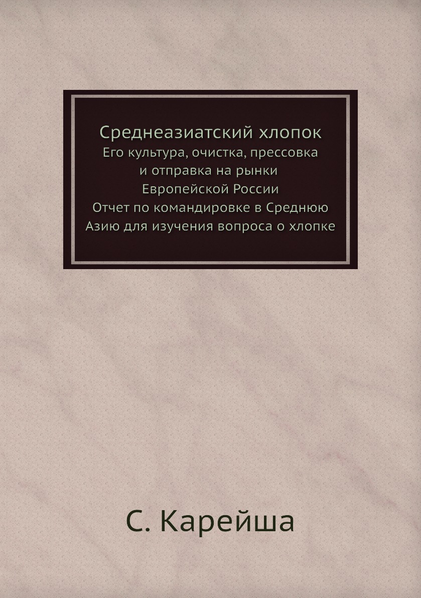 Эта книга - репринт оригинального издания (издательство "Киев, Типо лит. Выс. утв. Т-ва И.Н. Кушнерев и Ко.", 1892 год), созданный на основе электронной копии высокого разрешения, которую очистили и обработали вручную, сохранив структуру и орфографию оригинального издания. Редкие, забытые и малоизвестные книги, изданные с петровских времен до наших дней, вновь доступны в виде печатных книг. Книга является результатом поездки инженера С. Д. Карейши по Средней Азии с целью изучить технологию производства, очистки, прессовки и перевозки хлопка. Для написания книги были использованы как официальные источники областных правлений и чиновников, так и сведения, полученные от частных торговцев и владельцев хлопкоочистительных и прессовальных заводов.