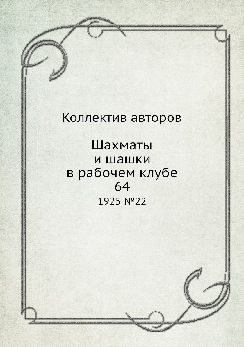 Эта книга - репринт оригинального издания (издательство "Издательство ВЦСПС", 1925 год), созданный на основе электронной копии высокого разрешения, которую очистили и обработали вручную, сохранив структуру и орфографию оригинального издания. Редкие, забытые и малоизвестные книги, изданные с петровских времен до наших дней, вновь доступны в виде печатных книг. Популярный шахматно-шашечный журнал. Двухнедельный орган Шахм.-шаш. секции ВСФК и Шахбюро при ВЦСПС. Отв.ред. Н.В.Крыленко. В состав редколлегии входили также Н.Д.Григорьев, Б.С.Левман, С.С.Левман, И.Л.Майзелис, В.И.Нейштадт, Л.Я.Френкель и дрСо второго полугодия 1968 года в еженедельном приложении к газете "Советский Спорт" под редакцией Т.В.Петросяна стал выходить еженедельник "64". С № 27 1977 года и.о. редактора, а с № 19 1978 года по № 52 1979 года редактором был Я.И.Нейштадт Задачи издания - оперативное освещение шахматной и шашечной жизни в СССР и за рубежом, наиболее значительных соревнований, творчества шахматистов и шашистов, публикация исторических, теоретических, учебно-методических материалов, помощь федерациям республик в их организационной и массовой работе. В «64» публиковались произведения шахматной композиции, библиографические обзоры и заметки, информационные и исторические материалы. В 1980 г. с № 1 (600) еженедельник «64» преобразован в журнал «64 - Шахматное обозрение».