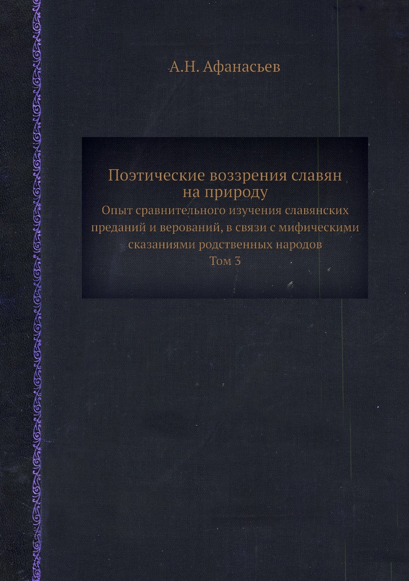 Эта книга - репринт оригинального издания (издательство "Типография Грачева и Комп. у Пречистинских ворот д. Шиловой", 1869 год), созданный на основе электронной копии высокого разрешения, которую очистили и обработали вручную, сохранив структуру и орфографию оригинального издания. Редкие, забытые и малоизвестные книги, изданные с петровских времен до наших дней, вновь доступны в виде печатных книг. Итогом многолетнего исследовательского опыта историка и фольклориста Афанасьева А. Н. (1826-1871) явились "Поэтические воззрения славян на природу" - фундаментальный труд, посвященный историко-филологическому анализу языка и фольклора славян и связи с языком и фольклором других индоевропейских народов. Его труд до сих пор не превзойден в мировой науке о фольклоре. Книга историка и фольклориста Афанасьева А. Н. (1826-1871) выявляет связи языка и преданий, более того, воскрешает основы русского мышления, что особенно важно сейчас, когда язык и мышление русского человека изуродованы газетными штампами, блатным жаргоном и сленгом всякого рода, замусорены иностранными словами.