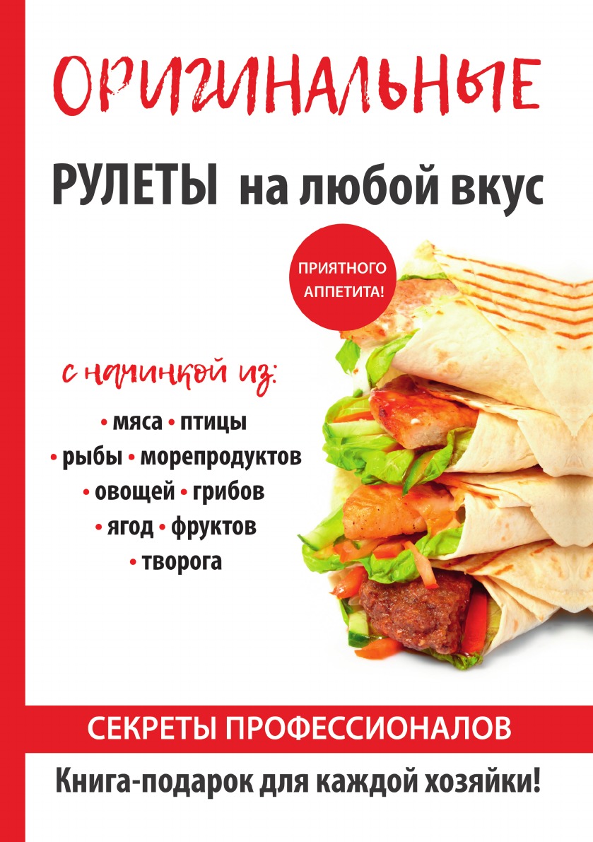 Рулет - универсальное блюдо, которым можно украсить любой стол. Для его приготовления можно использовать практически любые продукты и при этом импровизировать. Благодаря нашей книге вы научитесь приготовлению оригинальных рулетов с аппетитной начинкой. Вы найдёте замечательные рецепты блюд, включающих ингредиенты различных продуктов - мяса, птицы, рыбы, овощей, грибов, ягод, фруктов, творога и всегда сможете удивить своих гостей. Приятного аппетита!