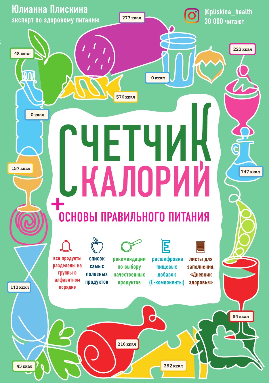 «Счетчик калорий» - это подробные таблицы пищевой и энергетической ценности; белки, жиры, углеводы, гликемический индекс, витаминный и минеральный состав, Е-компоненты. Счетчик калорий поможет: составить сбалансированный рацион питания, найти в нем лишние калории; не попасться на удочку производителей продуктов питания, научиться выбирать полезные продукты; разумно похудеть, не навредив своему здоровью. Правильное питание и здоровый образ жизни, - основа хорошего самочувстия и долголетия! Многие из нас, и врачи - не исключение, ввиду заблуждения, что здоровая пища - это всегда невкусно, что контролировать калорийность блюд - сложно, да и попросту пренебрегают данными постулатами. Очень здорово, что книга Юлианны Плискиной дает наглядные готовые инструменты для составления рациона питания. Держите книгу Юлианны всегда под рукой, и не заметите, как правильное питание станет вашей полезной привычкой! Дмитрий Ченцов, руководитель Региональной общественной организации «Врачи Санкт-Петербурга» и организационного комитета Всероссийского Конкурса народного признания «Наш Любимый ВРАЧ»