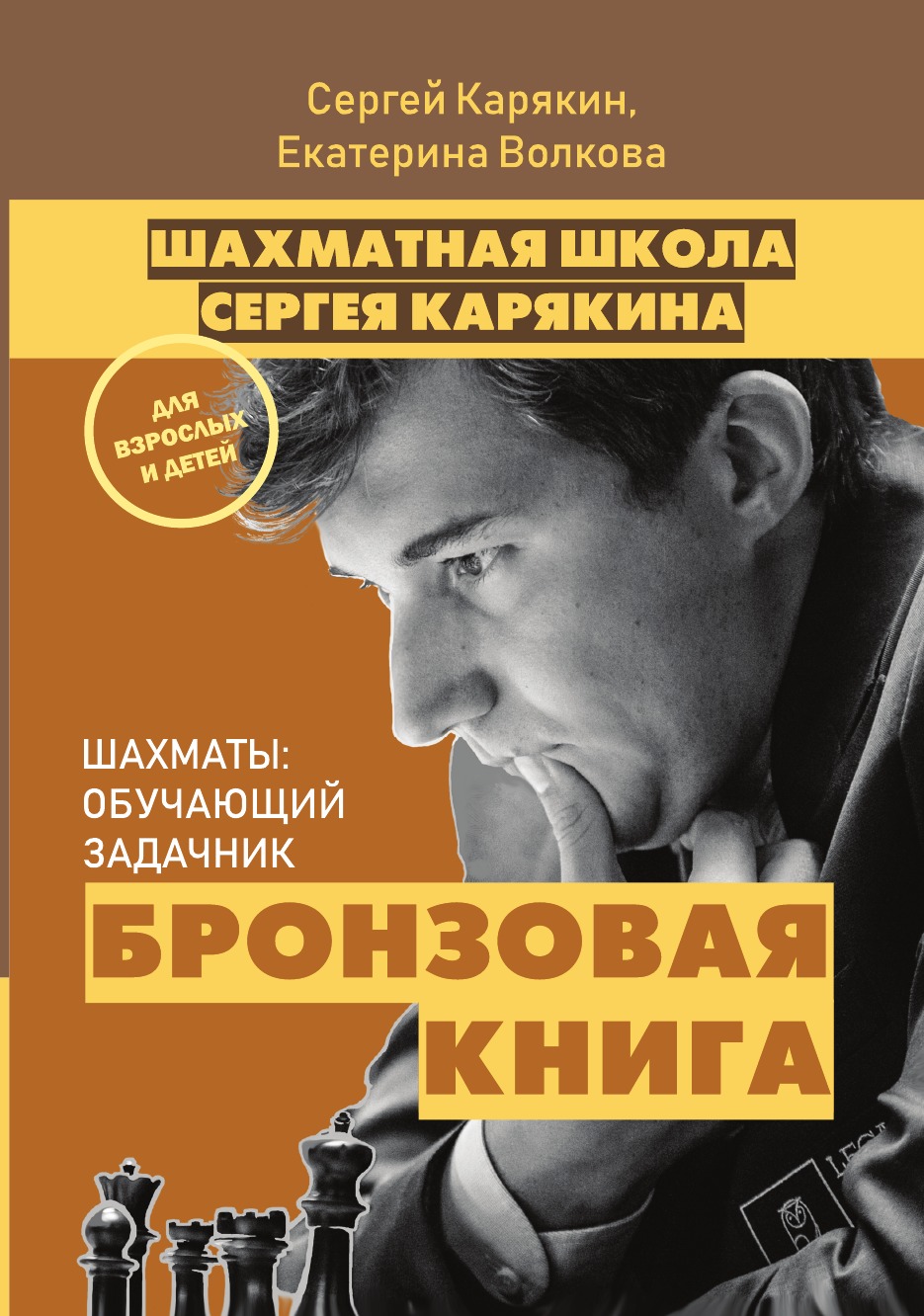 Сергей Карякин - международный гроссмейстер, вице-чемпион мира по шахматам, чемпион мира по быстрым шахматам и блицу, первая доска сборной России по шахматам, член Общестенной палаты Российской Федерации, самый молодой гроссместер в мире. Екатерина Волкова - кандидат в мастера спорта по шахматам, лицензированный тренер Международной шахматной федерации (ФИДЕ), автор более 10 книг о шахматам, руководитель сети детских центров «Академия мыслителей». «Бронзовая книга» - вторая книга серии шахматных задачников ведущего шахматиста мира Сергея Карякина. Книга-задачник содержит более 500 заданий на мат в один и два хода и выигрыш материального преимущества. Задания расположены по возрастанию сложности и помогут юному шахматисту разобраться в простых тактических приемах, чтобы уверенно чувствовать себя во время шахматной партии. Книга-задачник подходит для занятий в школах, кружках, спортивных школах и самостоятельно дома с родителями. Книга рекомендуется тем, кто уже успел решить все задания из «Медной книги», пер- вого задачника из серии «Шахматной школы Сергея Карякина». Следующие задачники для продвинутого уровня: - «Серебряная книга»; - «Золотая книга».