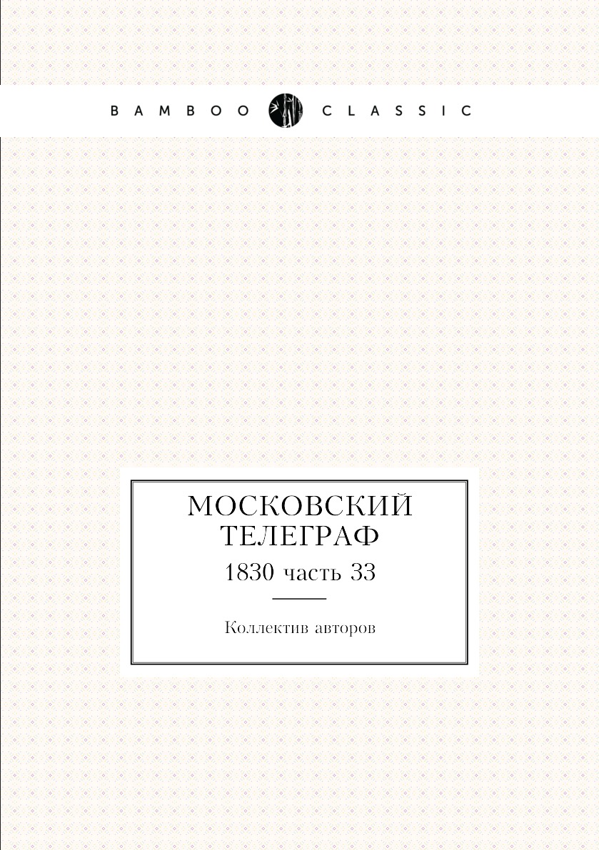 Эта книга - репринт оригинального издания (издательство "Типография А. Семена", 1830 год), созданный на основе электронной копии высокого разрешения, которую очистили и обработали вручную, сохранив структуру и орфографию оригинального издания. Редкие, забытые и малоизвестные книги, изданные с петровских времен до наших дней, вновь доступны в виде печатных книг. Первый русский энциклопедический журнал. Выходил в 1825-1834 гг. С 1826 г. «Московский телеграф» регулярно печатает статьи в либеральном духе о политических событиях вне России, с 1828 г. выступает в защиту «среднего сословия» и против дворянских привилегий, начинает полемику с «литературной аристократией» Пушкиным и его кругом. Приобретший репутацию политически неблагонадёжного издания, закрыт в 1834 г.Репринтное издание по технологии print-on-demand с оригинала 1830 года